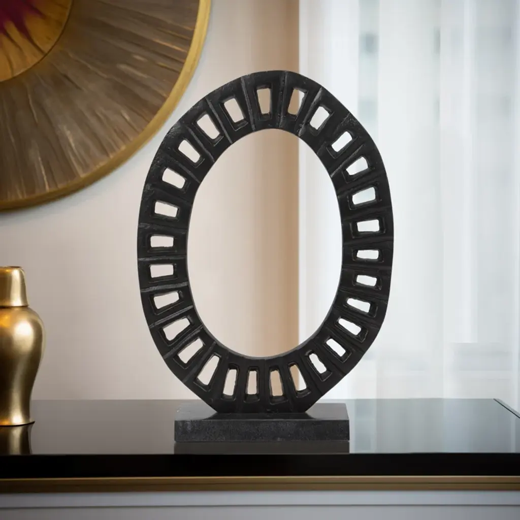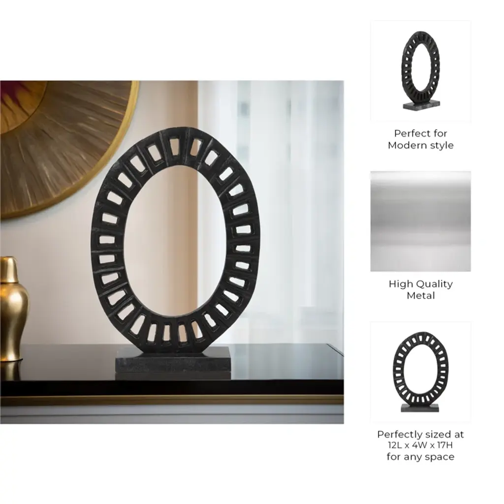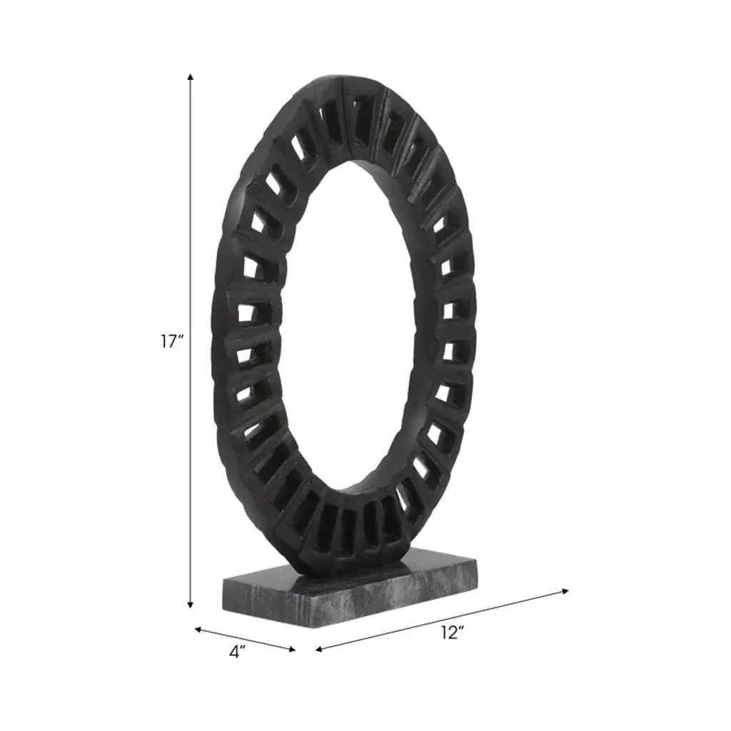 Sagebrook's Cleveland Exquisite 17" Teigan Ring Statuary In Black - A Stunning Aluminum And Marble Sculpture