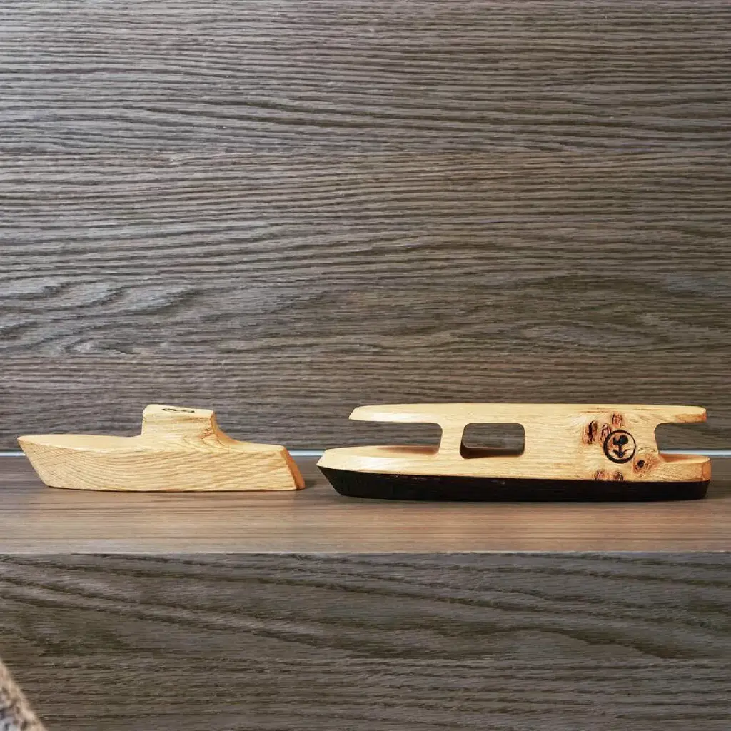 An iconic object, this wooden set of 2 Taxi sculpture, by Marco Zito, is a symbol of the Venetian sweet life. Crafted from authentic Venetian briccola wood (from the poles in the Venice lagoon) it is both smooth and vibrant in the simplicity of its form and will make a delightful accessory when floating upon any shelf or table in the home.