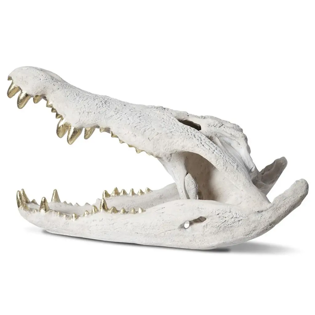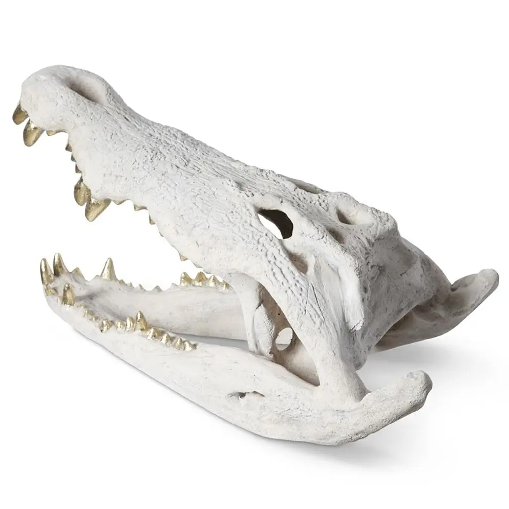 Santi Coastal Beach White Resin Gold Leaf Crocodile Skull Sculpture