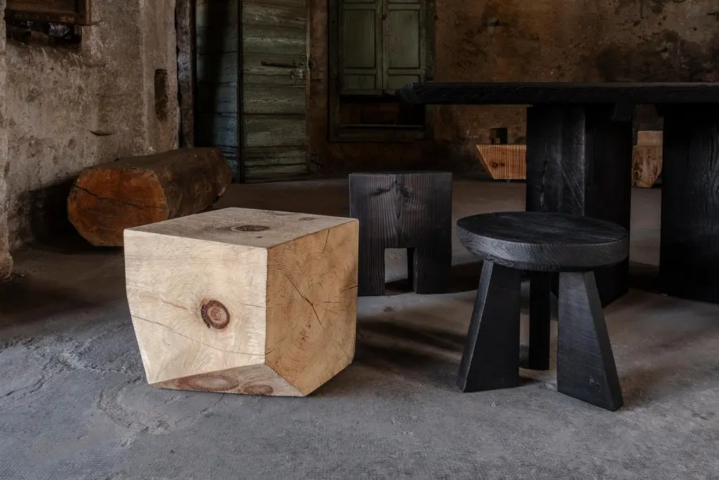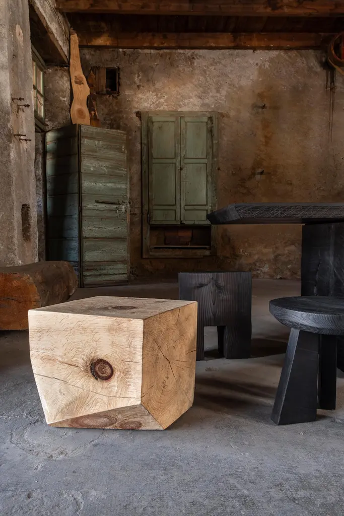 Scilly Rock Sculpture by Riccardo MonteDimensions: D 43 x W 43 x H 40 cm.Materials: Cedar.Riccardo Monte is a creative studio based in the Italian Alps.With the vision of creating a multi-disciplinary studio, architecture, design, and art come together to shape one-of-a-kind projects. Riccardo’s work is simple, honest, and authentic. Riccardo is an architect and maker who loves his job.Following eight years of work as an architect in London, Riccardo returned to his mountainside home in Ornavasso, Italy – quitting the city and chasing a change in rhythm. This shift in geography and tempo gave structure to Riccardo’s solo practice, which rests on exploring the beauty in the existing and elevating natural materials through low-intervention processes. He left the city in 2016 and spent the following six months in a mountain cabin with no electrical power. Remote and in solitude, his time there brought him closer to nature and the values of a simple life. He has since been based in his studio home, nestled close to the Swiss border in the Alps, working together with his British partner Katie, a photographer & filmmaker.Riccardo studied architecture at Politecnico di Milano and London South Bank University. In London, he worked for six years at dRMM Architects. In 2016 he moved back to Italy.