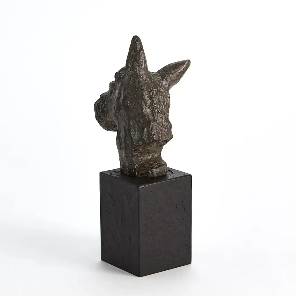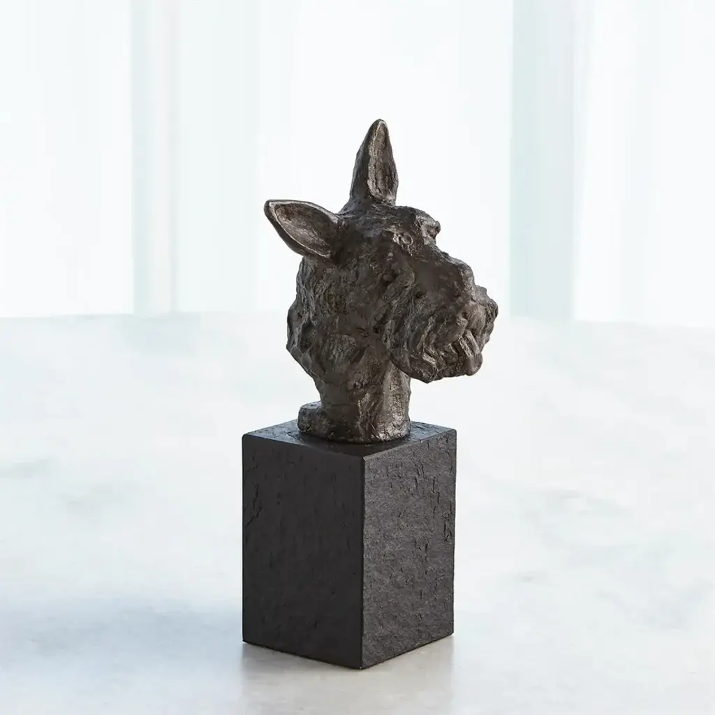 The Scottish Terrier Sculpture is made of cast iron with a natural finish on a flamed black marble base. From a fashion forward perspective, Global Views offers accessories, furniture, statement lighting, and an assortment of rugs and mirrors to add beauty and joy to your home.