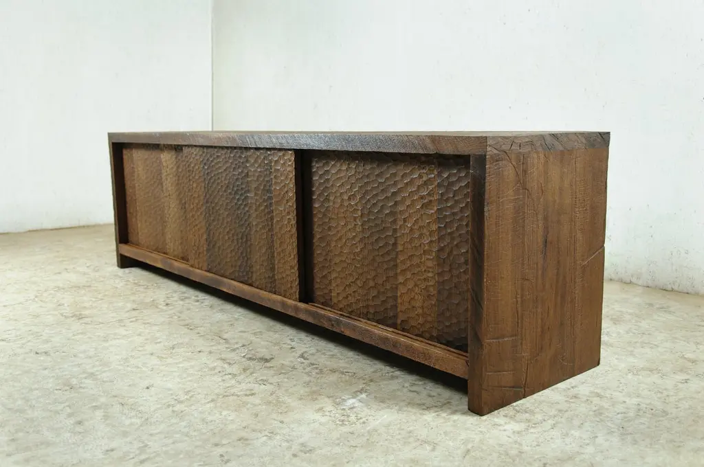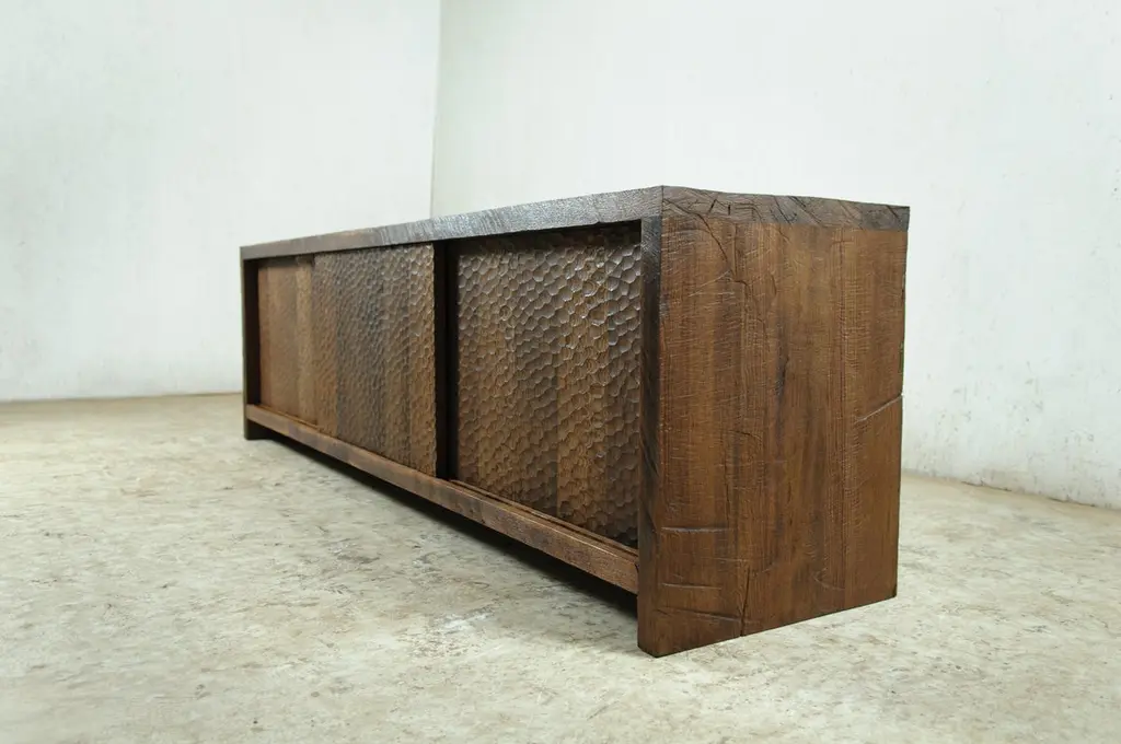 Sculpted Credenza 'Hammered' In Solid Oakwood 'Custom Size'