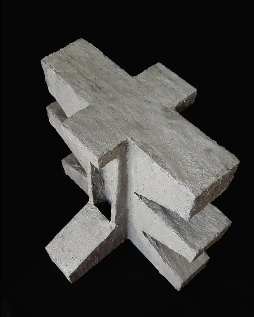 THE DESERTED CITY - THE HORSE“No doors opened, nobody answered,no sound of steps,no dogs barking,no horses neighing, nothing broke that taciturn hallucination."The Deserted City is a series of sculptural constructions in homage to "GOG", the book by Giovanni Papini, 1881-1956. ARCHITECTURAL AND ENIGMATIC. DRAMATIC. DARK. CRUDE. BALANCED. BRUTALISTIC. ATEMPORAL.The sculptures in The Deserted City speak of labyrinths and impossible constructions, where the very vision of the pieces can be confusing. The pieces can be placed in various positions, taking shapes that play with the viewer's mind through gaps and protrusions.In them, light and shadow have a fundamental aesthetic and harmonic value, which makes the mind wander, transporting it to a space-time lost in the confines of known civilisation.MATERIAL: plywood, pigmented plaster, marble dust.DIMENSIONS: 350 x 400 x 390 mm (LxWxH).LIMITED EDITIONS: 1AP + 20 units.We work on it layer by layer. Creating the design and working the wood. Then we cover the piece with layers of coloured plaster applied with a brush to give it volume and we finish with two coats of water-based varnish.