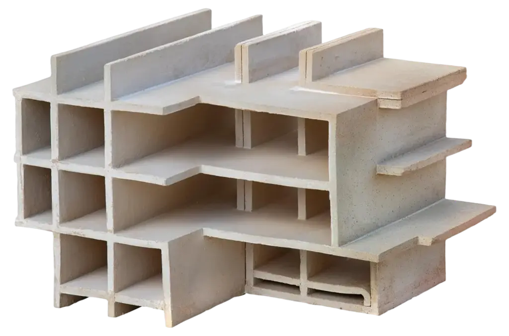 THE DESERTED CITY - THE SHIP“For Many And Long Years I Have Lived, Alone And In Silence, Under The Great Waters. I Have Inhabited All The Seas, I Have Explored All The Oceans, I Have Lowered All The Abyss…”The Deserted City is a series of sculptural constructions in homage to "GOG", the book by Giovanni Papini, 1881-1956. ARCHITECTURAL AND ENIGMATIC. DRAMATIC. DARK. CRUDE. BALANCED. BRUTALISTIC. ATEMPORAL.The sculptures in The Deserted City speak of labyrinths and impossible constructions, where the very vision of the pieces can be confusing. The pieces can be placed in various positions, taking shapes that play with the viewer's mind through gaps and protrusions.In them, light and shadow have a fundamental aesthetic and harmonic value, which makes the mind wander, transporting it to a space-time lost in the confines of known civilisation.MATERIAL: plywood, pigmented plaster, marble dust.DIMENSIONS: 350 x 400 x 350 mm (LxWxH).LIMITED EDITIONS: 1AP + 20 units.
