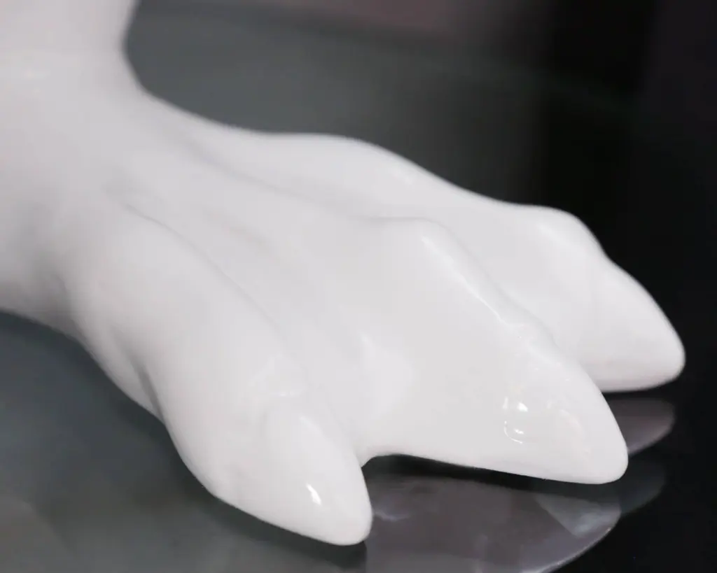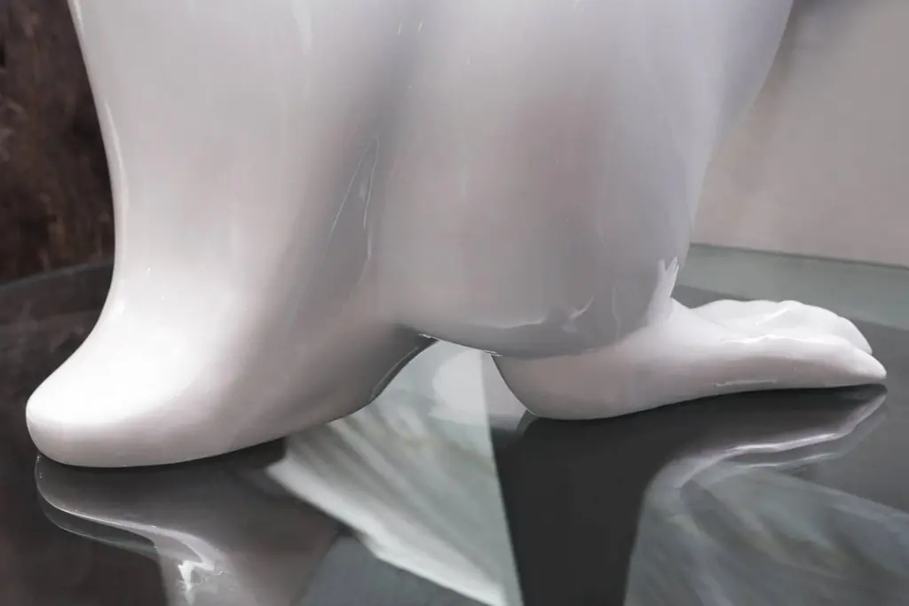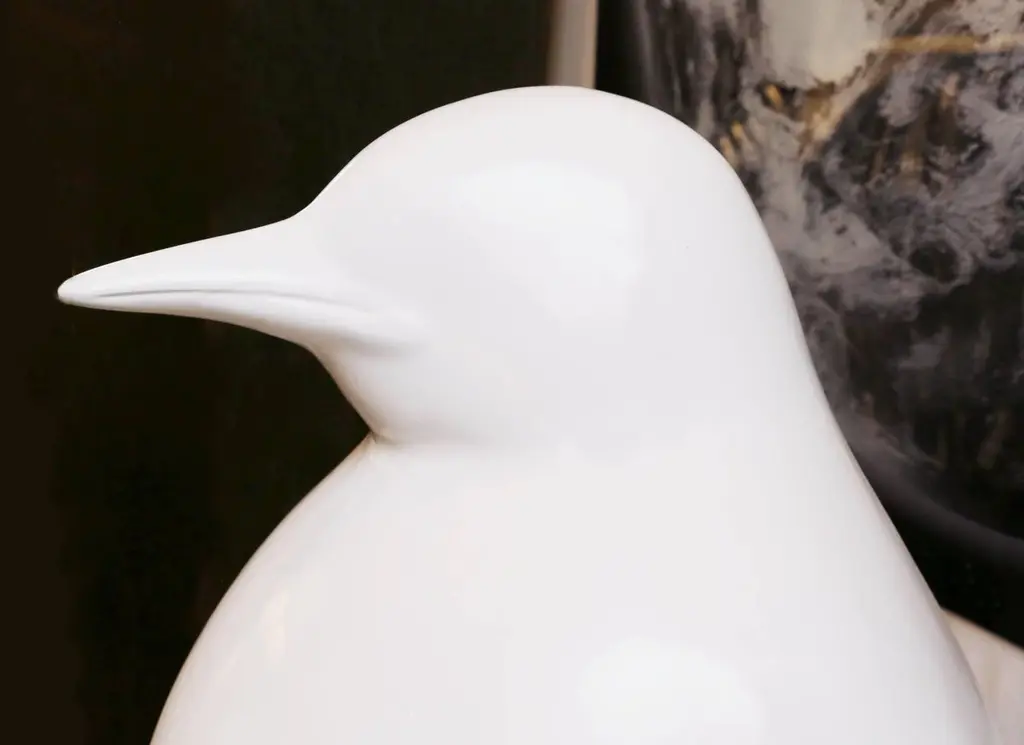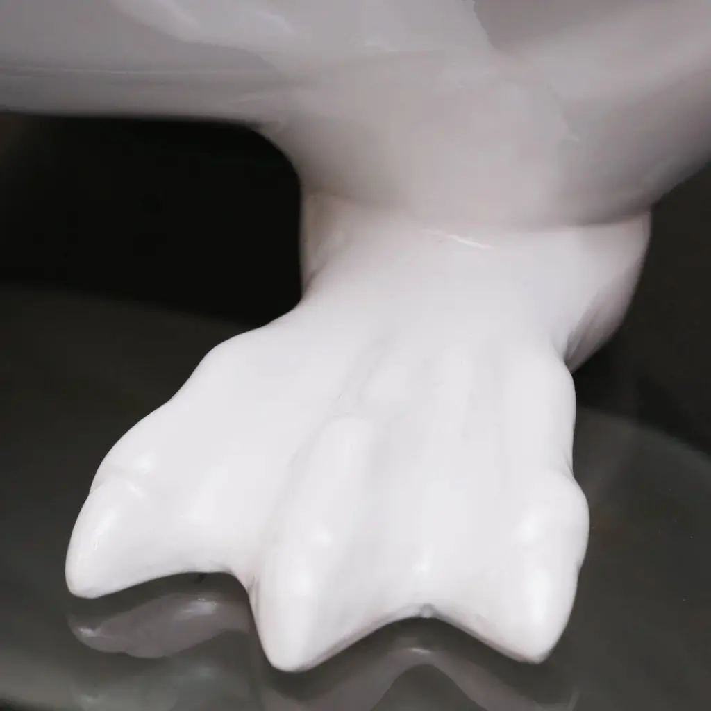 Sculpture of Emperor penguin in varnished whitelacquered resin.Created by David Rousselot – ParisTwo sizes available.Measures: Small model, L 50 x D 40 x H 85cm. Price: €4250.00Small model available now.Large model, L 70 x D 50 x H100cm. Price: €5250.00.Large model available under 4 weeks.