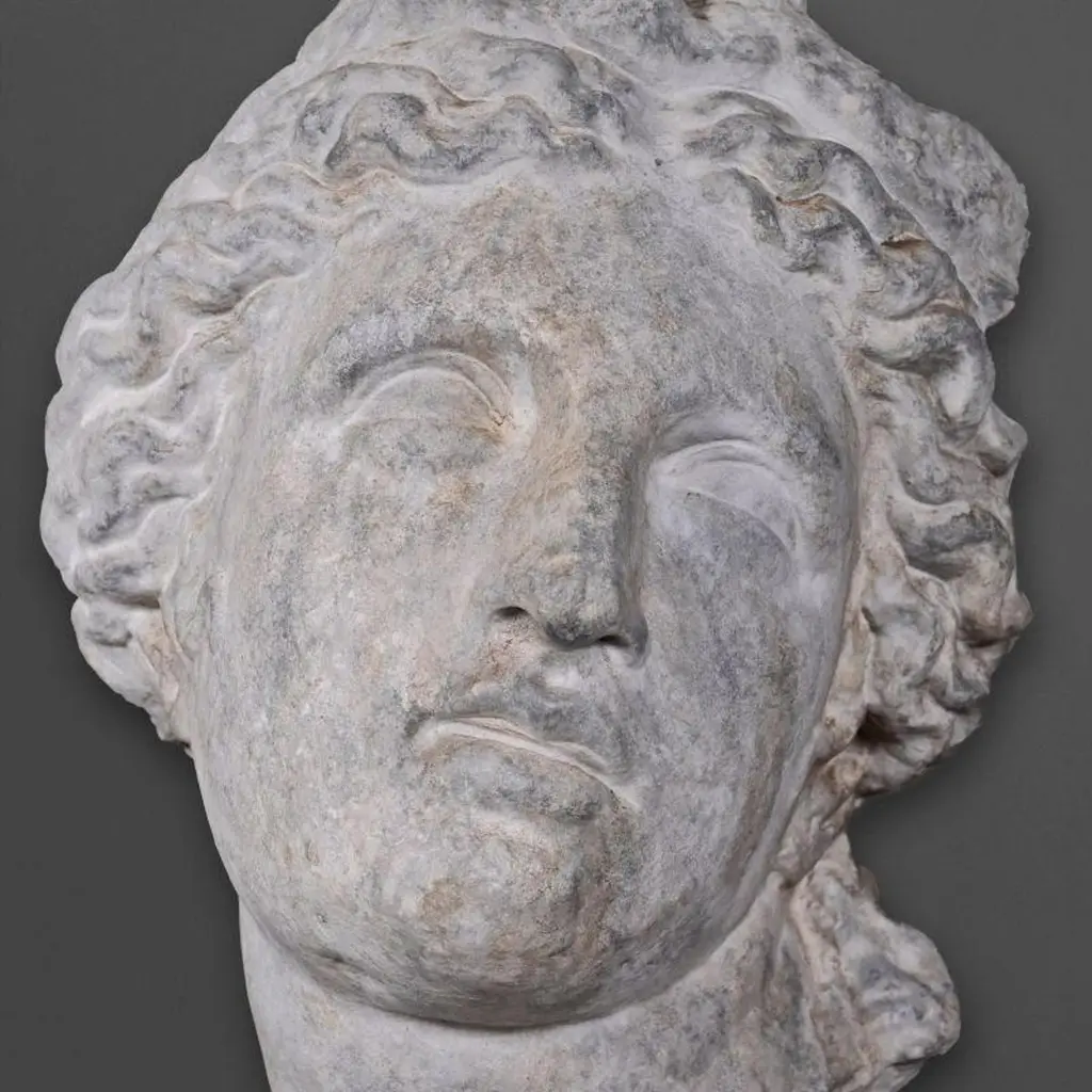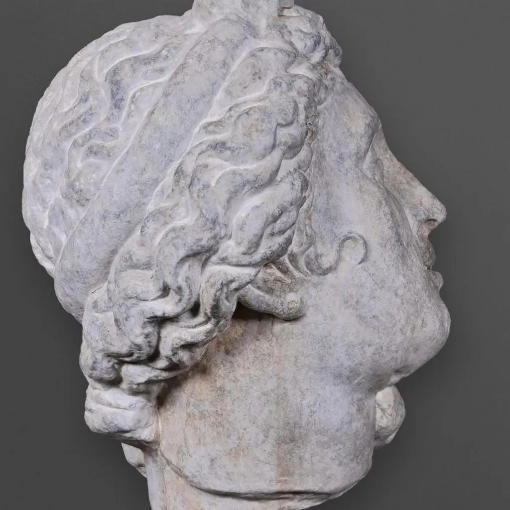 Sculpture Of The Head Of Artemis In Patinated Plaster.