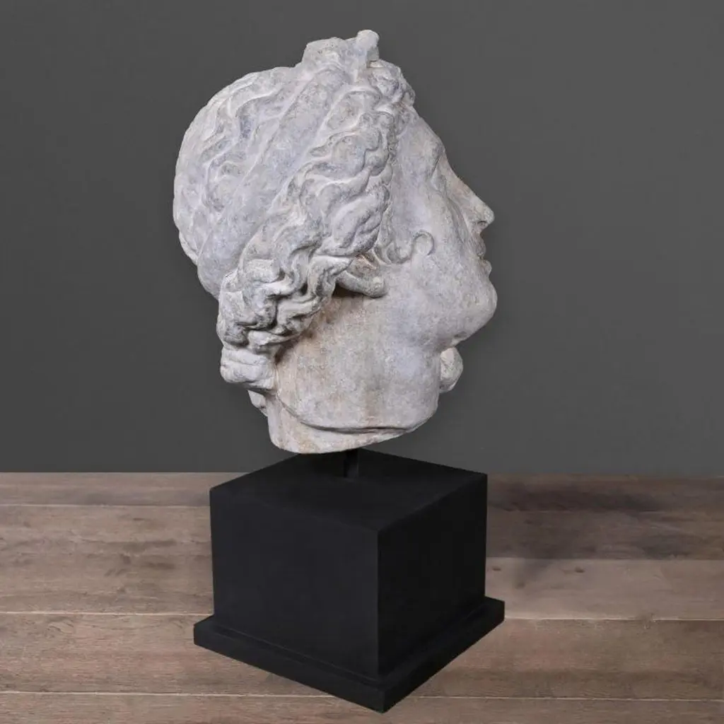 Sculpture of the head of Artemis in patinated plaster.Daughter of Zeus, Artemis is the sister of Apollo, goddess of hunting and the moon.This statue comes from a cast made by an amateur collector in the 17th century. It was found during excavations and is reproduced here exactly as it was.Material: Plaster H: 56 cm, W: 30 cm, D: 30 cmWeight: 9 kg