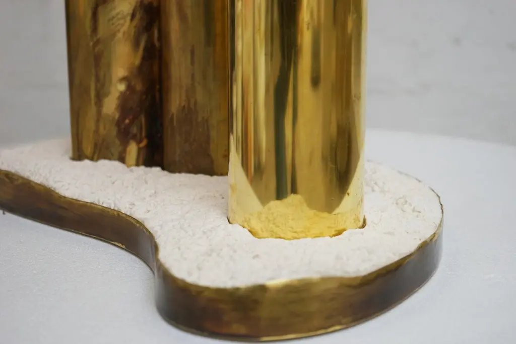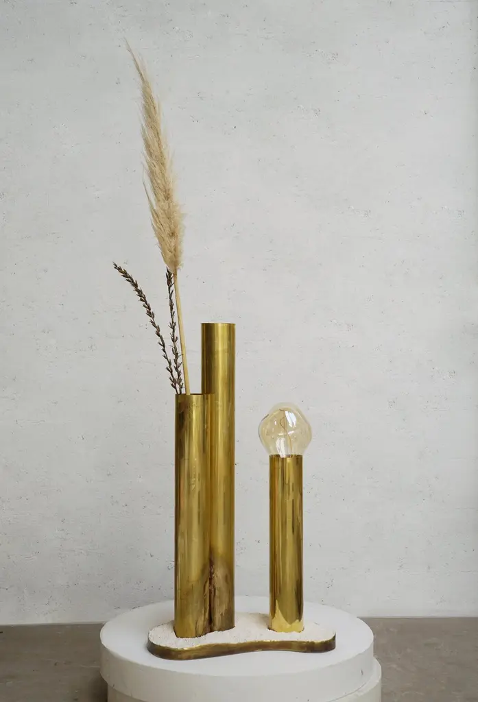 Sculpture stem floor light, signed by Pia ChevalierDimensions: H.90cm L.60 x 40cmBulb Tala Voronoi II 16.5 cmMaterials: Brass brazed with silver and base in jesmonite - acrylic resin - set with brass blown glass bulb.Pia Chevalier is a French contemporary designer.Independent designer, trained in Design and Crafts and more specifically on the sets and surface treatments, at Boulle School, Pia Chevalier today has her own workshop in the goldsmith's shop, the former premises of Christofle.The designer gives way to total spontaneity in its creative process and the composition of her pieces. Her love for raw materials incites her to constantly transform them for the purpose of unique sculptural pieces creation.Focused on the object of daily life, it gives it a status of sculpture capable of arousing emotion and create an emotional bond.Her obsession is to give solemnity to these objects, to make them endearingHer works were sold to prestigious collections and institutions.