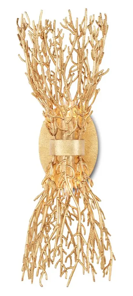 Spot-on piece for accenting coastal decors with a dash of femininity, this sculpture was crafted by combining authentic pieces of seas with exclusive goldsmith techniques. A total of seven green and pink sea urchin shells decorate the three gilded brass bamboo cane-like elements that gracefully stem from a clean-lined coordinated base.