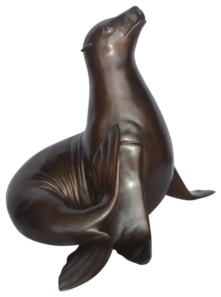 This bronze statue of a seal doubles as a fountain. It carries its own character and attitude which is signified in the position of the seal. Waddling in a perched position, the seal''s detail is in his angle looking upwards and replicates a real life seal. The fountain is unique in that the water comes out of the mouth with the use of a fountain pump (pump is not included). This piece with a glossy finish would look wonderful in any space, specifically home entryways or large rooms. Size: 5"L x 5"W x 45"H. Weight is: 45Lb