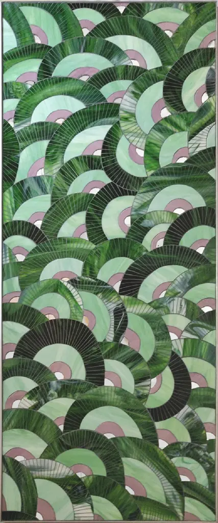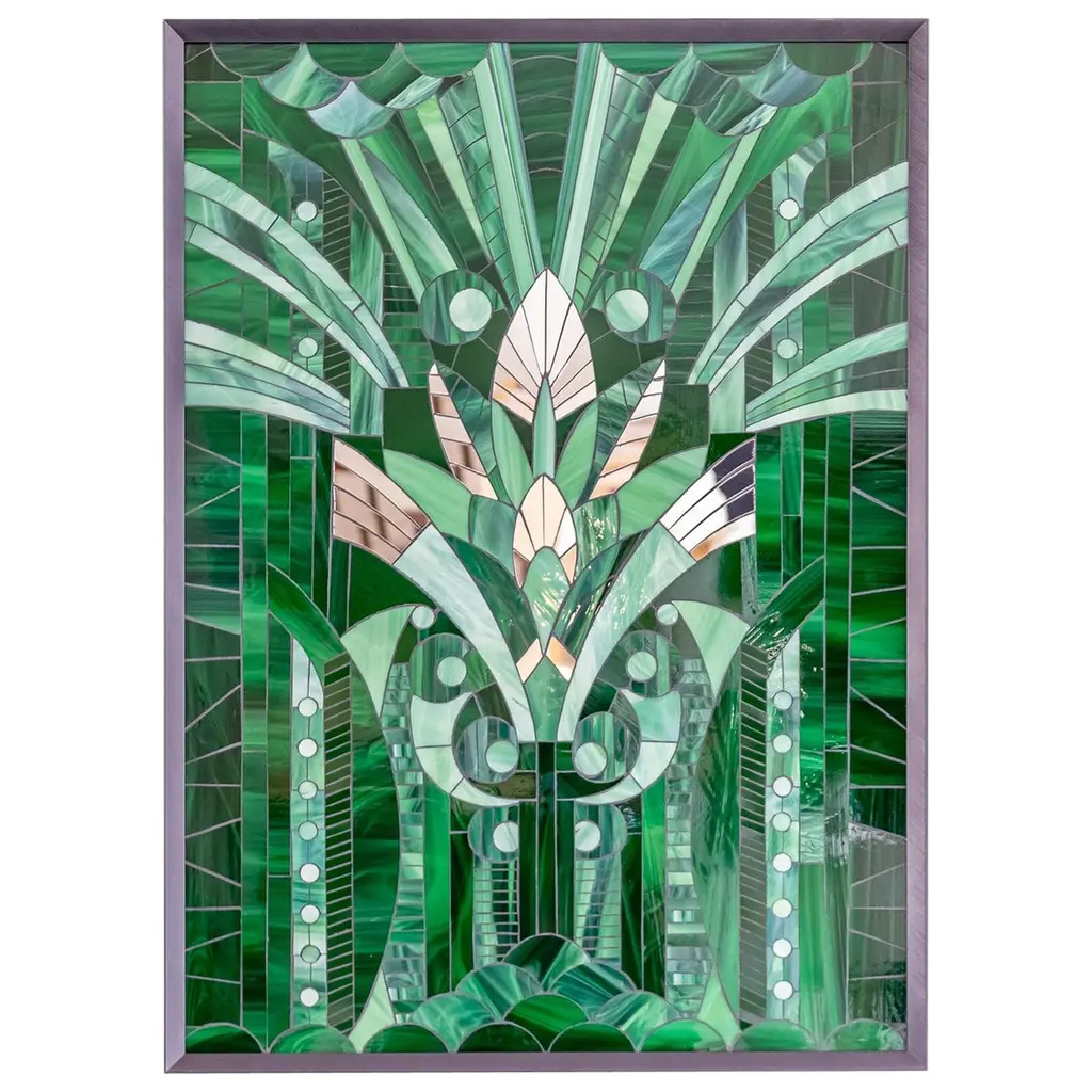 Secret Garden wall sculpture by Myriam HubertDimensions: W 75 x H 180 cm.Materials: 'Glass marquetry' with mirror inlays.Intended for residential and hotel interiors, Myriam Hubert's wall compositions evoke stained glass with a new approach. The glass pieces are arranged according to a very precise design punctuated by mirror pieces. Thus sublimated, the material reveals a game of reflection that continuously varies depending on the angle of view.Myriam HubertNothing predestined her to work with glass. Born in 1987 in Compiègne (60), Myriam Hubert began her professional life working for humanitarian organizations in crisis contexts. Until she realizes that her destiny may lie elsewhere. During her last mission in Lebanon, she pushes the doors of a mosaic manufacturing workshop. The young woman observes the cutting techniques, fast and precise, and then clings to her desire to work on the art of carving the material. In a few months, these apprenticeships based on professional encounters and personal research put her on the job.Back in France, in 2013 she joined a collective workshop of craftsmen. An intense period of learning and achievement followed, during which glass became her material of choice. The years pass and she gradually abandons her initial project to devote herself to a line of jewelry, which allows her to produce extremely precise glass work. Her line of jewelry quickly met with success. She then thinks back to her aspirations as a mosaic artist and devotes herself to a strong artistic project: glass marquetry. "Especially since the jewel gave me a whole new look at glass".At this point in her career, everything becomes clear. In 2018, she presented her first mural compositions and received many enthusiastic feedbacks. In 2022, she participated in the Biennale Internationale Révélations at the Grand Palais, and the same year received Congratulations from the Jury of the national competition of Ateliers d'Art de France.