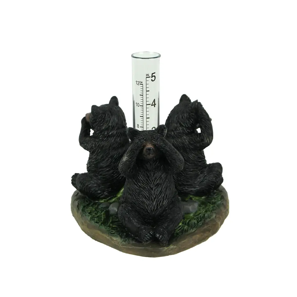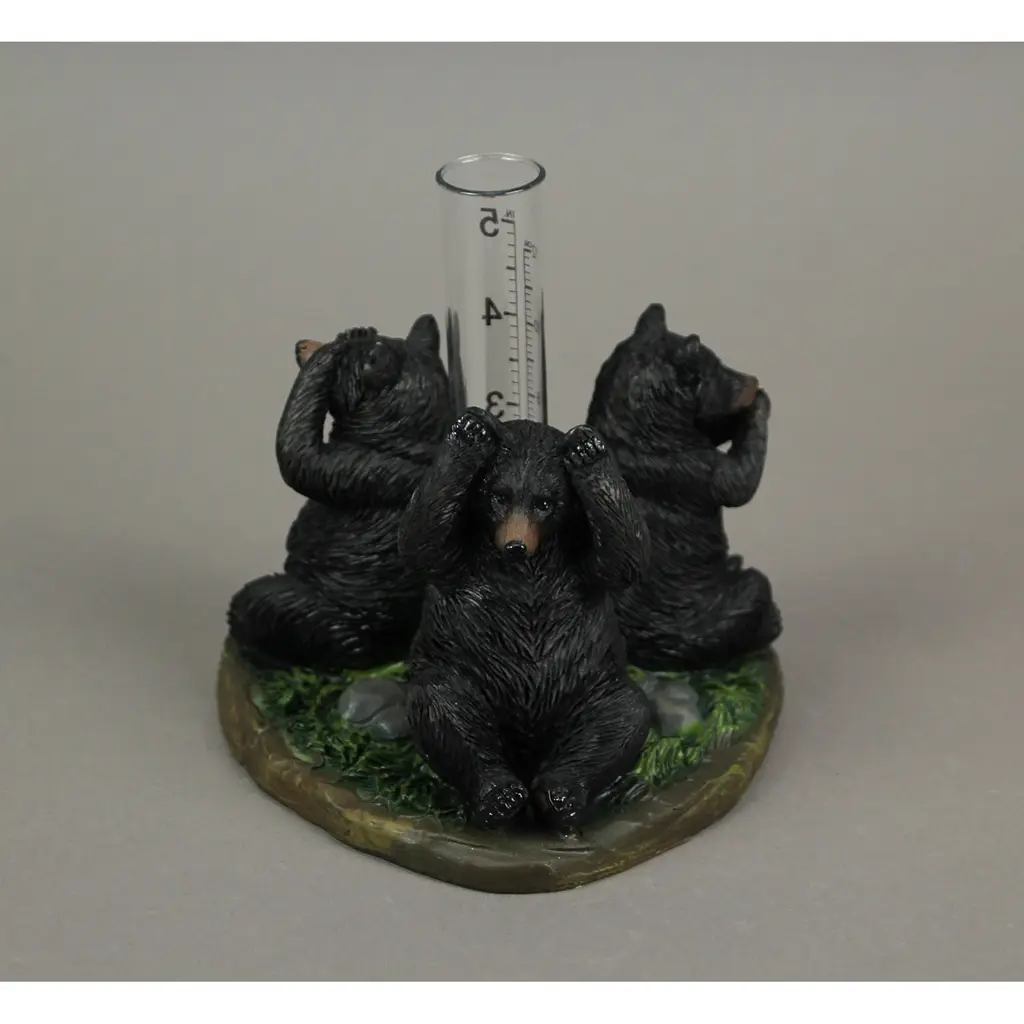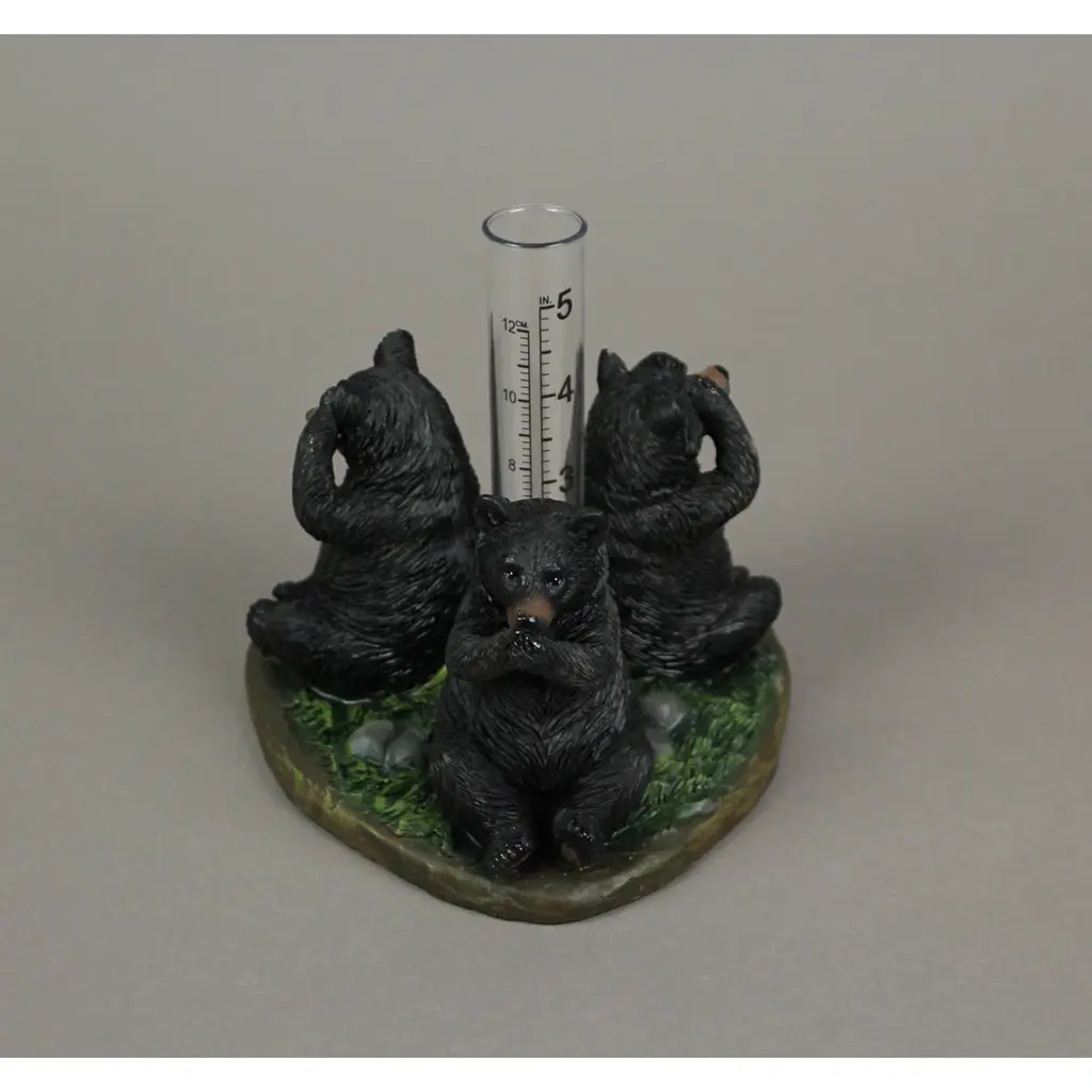 Measure the rainfall in a fun and decorative way with this See, Hear, Speak No Evil trio of black bears rain gauge. Crafted from long-lasting polyresin with a glass rain catcher, the hand-painted details give this rain-measuring sculpture an incredibly detailed look. Measuring 5.5 inches long, 5.75 inches wide, and 5.75 inches high, this functional decoration is great for your garden, patio, or deck. Great as a gift for yourself or friends and family.