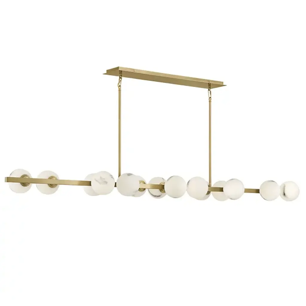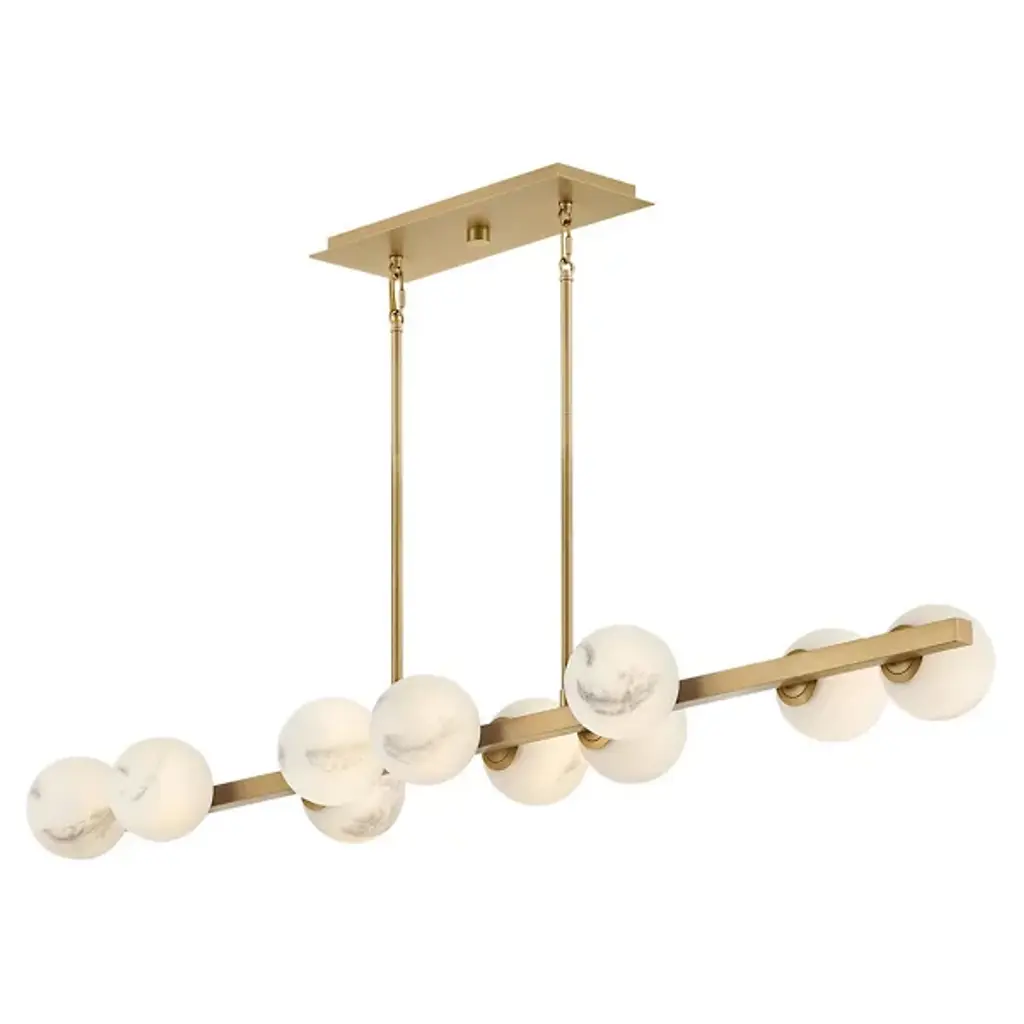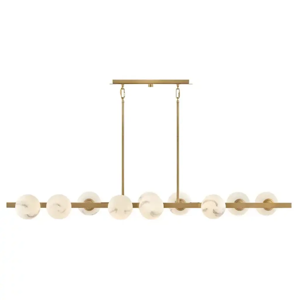 The Selene Linear Suspension from Hinkley is a radiant combination of form and function. Crafted from robust steel, this suspension features swirled glass shades that evoke a captivating mid-century modern aesthetic. The candelabra base LEDs within the shades emit a warm and inviting glow, creating a well-lit ambiance. Secured by sleek downrods attached to a ceiling canopy, Selene offers a beautiful presentation. With dimmable capabilities, when used with an ELV dimmer, you can adjust the lighting as needed.