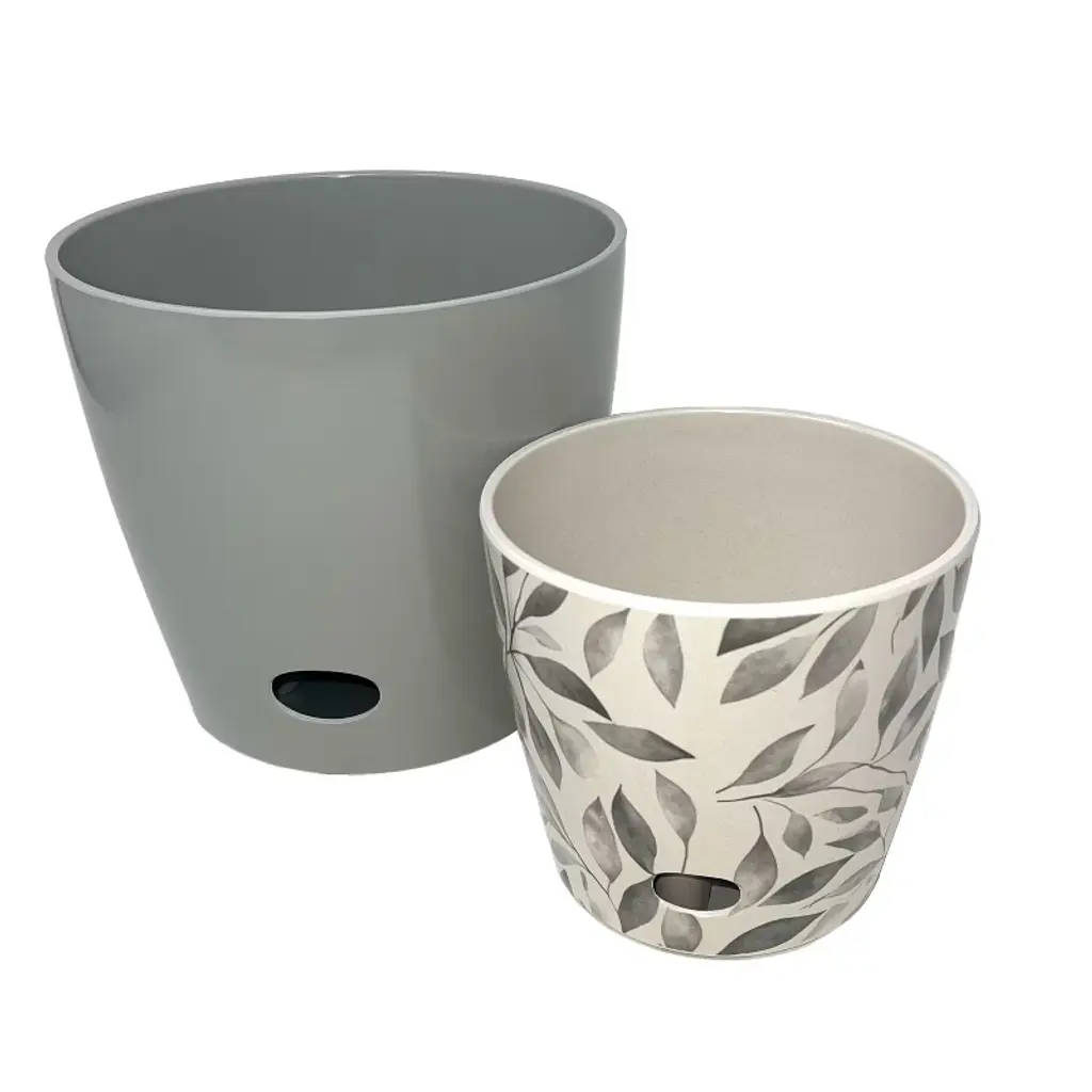 Self-watering Indoor/outdoor Plant Pot Set Of 2 - 5" Gray Leaves & 7" Gray Round