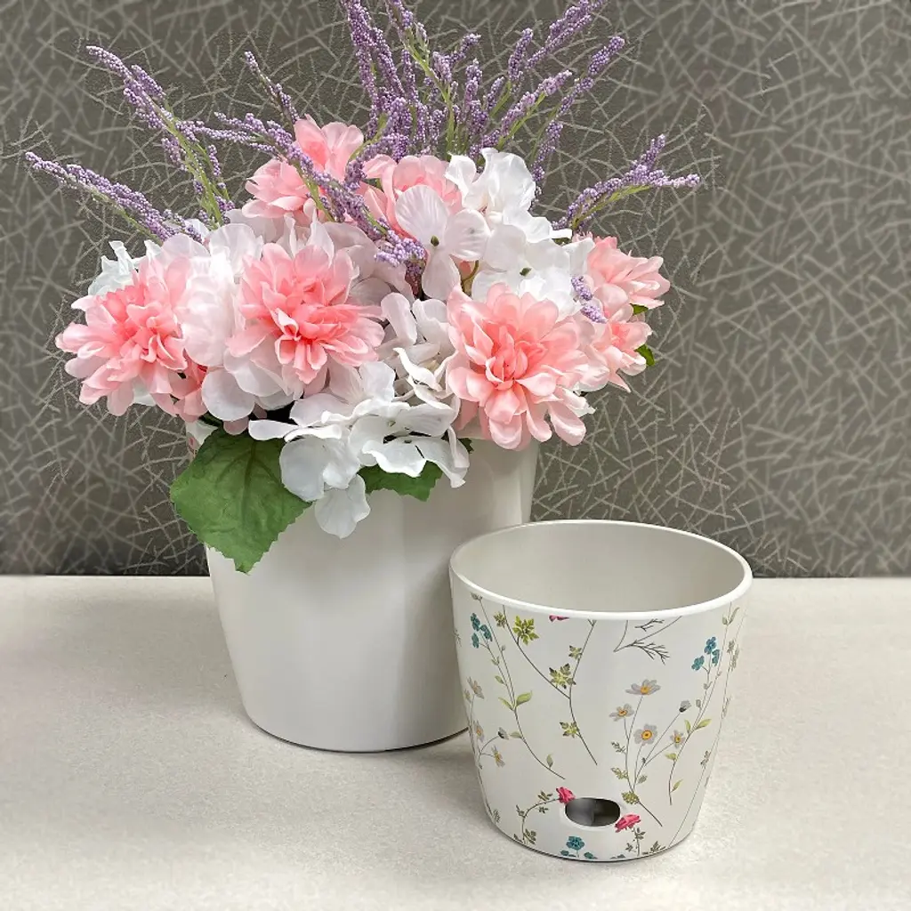 Self-watering Indoor/outdoor Plant Pot Set Of 2 - 5" Wildflower & 7" Cream Round