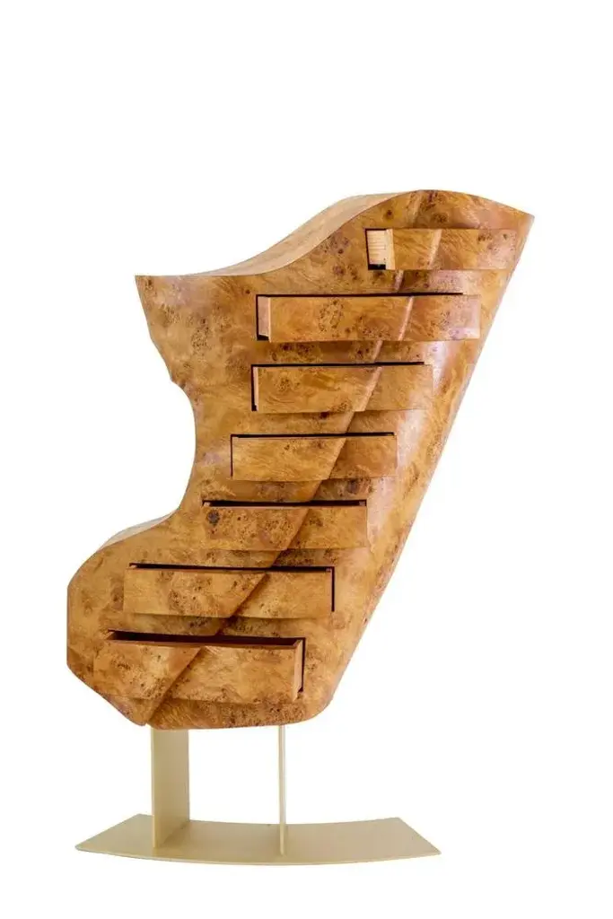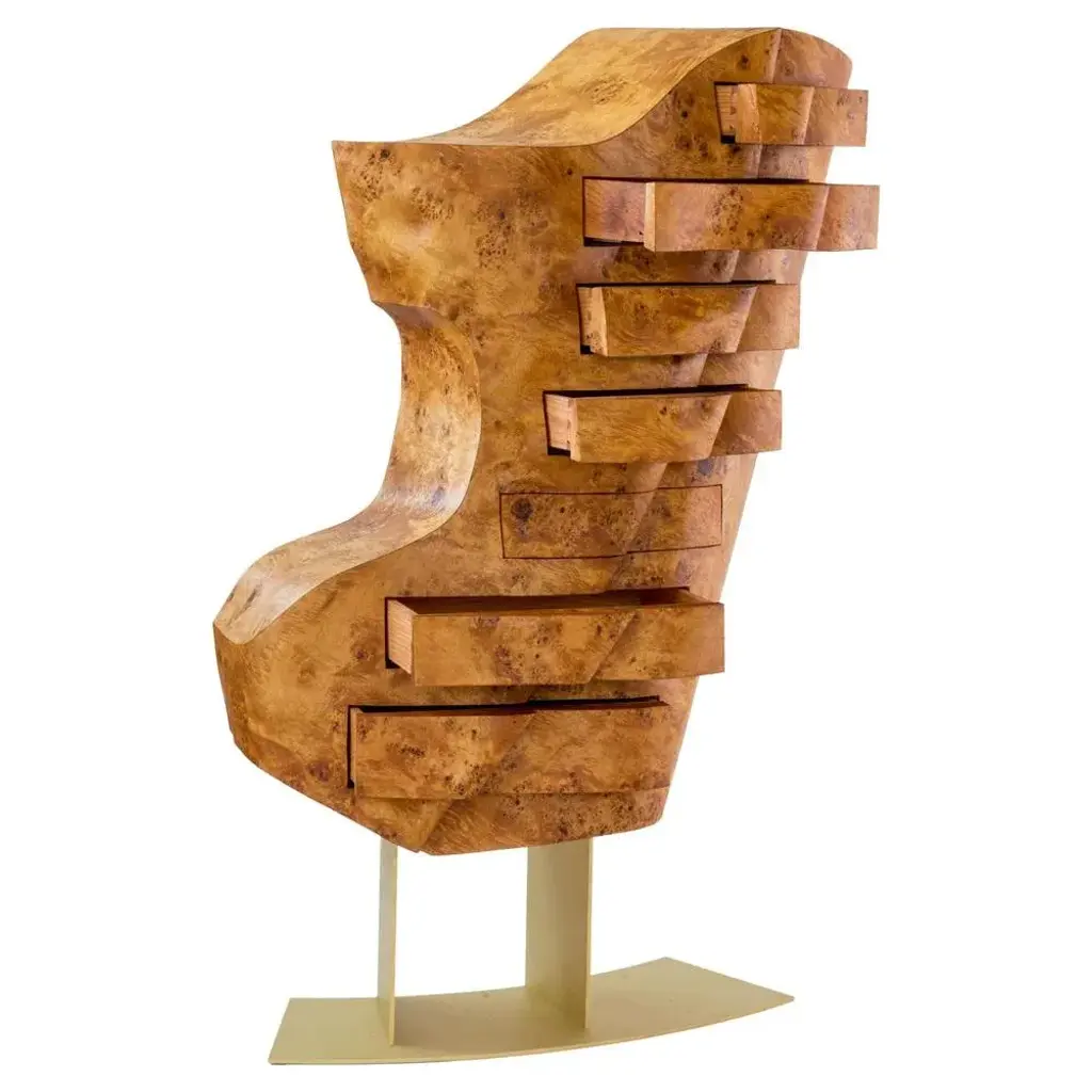 Settimio chest of drawers by secondome edizioni limited edition of 9 pieces + 3 a.p. Designer: stefano marolla. Dimensions: d 80 x w 120 x h 165 cm. Materials: poplar root wood and brass. Collection / production: secondome. This piece can be customized. Available finishes: any kind of wood. Bottom available in brass, different finishings on request. Iron, stainless steel or wood. Please contact us. Settimio is a “settimino” chest of drawer (seven-drawer dresser) created with a clear allusion to sculpture, almost as a provocation, that follows the tendence to mix art and design. The gallery secondome is a design gallery focused on contemporary designers and innovative projects worldwide. Founded by claudia pignatale in 2006, secondome produces its own collection of furniture and objects working to launch experimental designers, artisans and master craftsmen. Its mission lies in highlighting both the high quality manufacture of the made in italy brand and the originality of products, emphasizing the tradition of italian craftsmanship whilst breaking the mold of lifeless objets d’art. The artisanal nature of secondome’s production makes each piece individual and highly personalized.