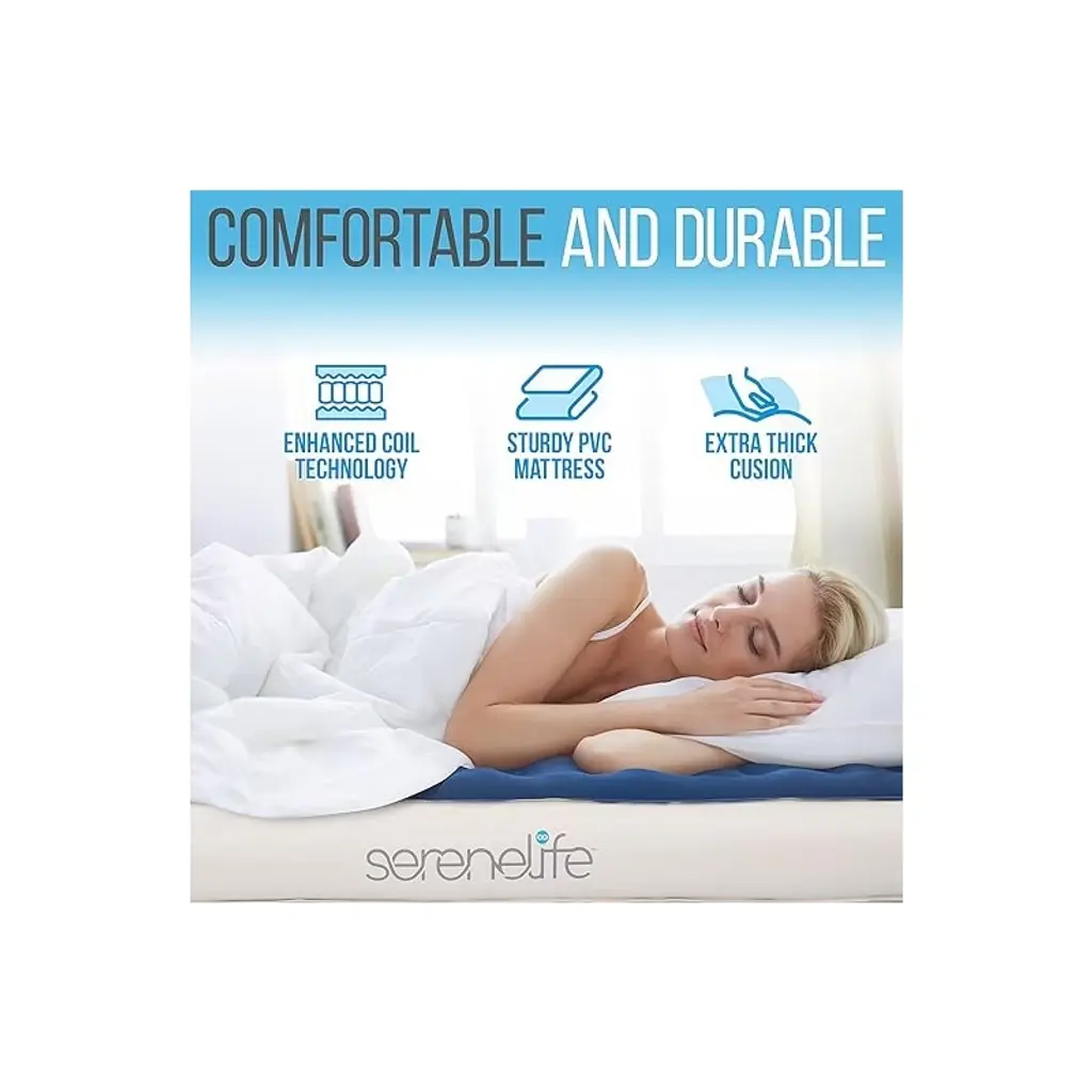 Introducing the SereneLife EZ Air Mattress with Durable Steel Frame – Elevate Your Resting Experience to Unmatched Heights! Experience the SereneLife EZ Air the pinnacle of luxury and durability with our Raised Airbed, an innovative mattress designed to redefine the way you sleep. Crafted with precision and fortified by a robust steel frame, this airbed ensures not only elevated comfort but also unmatched resilience for a truly exceptional sleep experience. The SereneLife EZ Air boasts a durable steel frame that stands as a testament to strength and stability. Say goodbye to flimsy sleep surfaces – the reinforced structure of SummitForge™ guarantees a secure and supportive foundation, providing you with a reliable oasis of comfort every night.