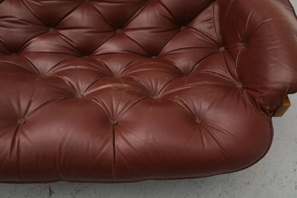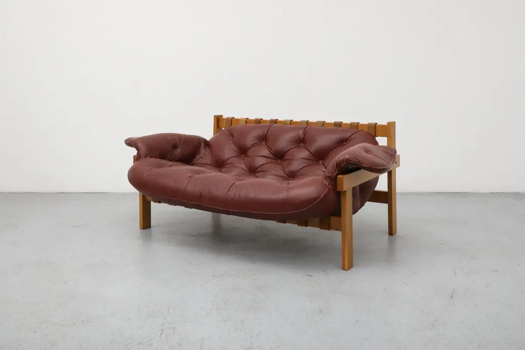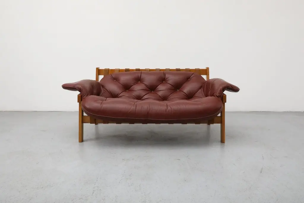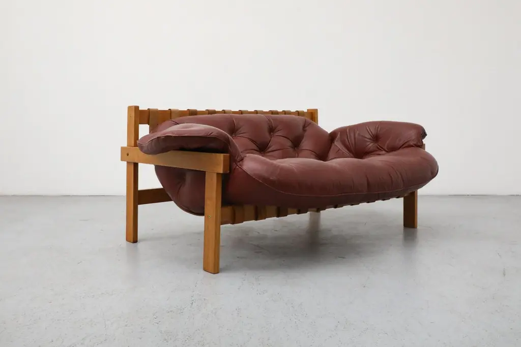 Sergio Rodrigues Style “Balassa” Burgundy Leather Loveseat