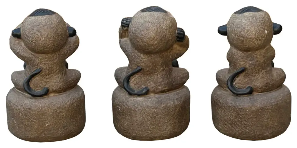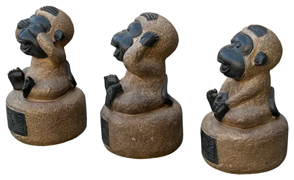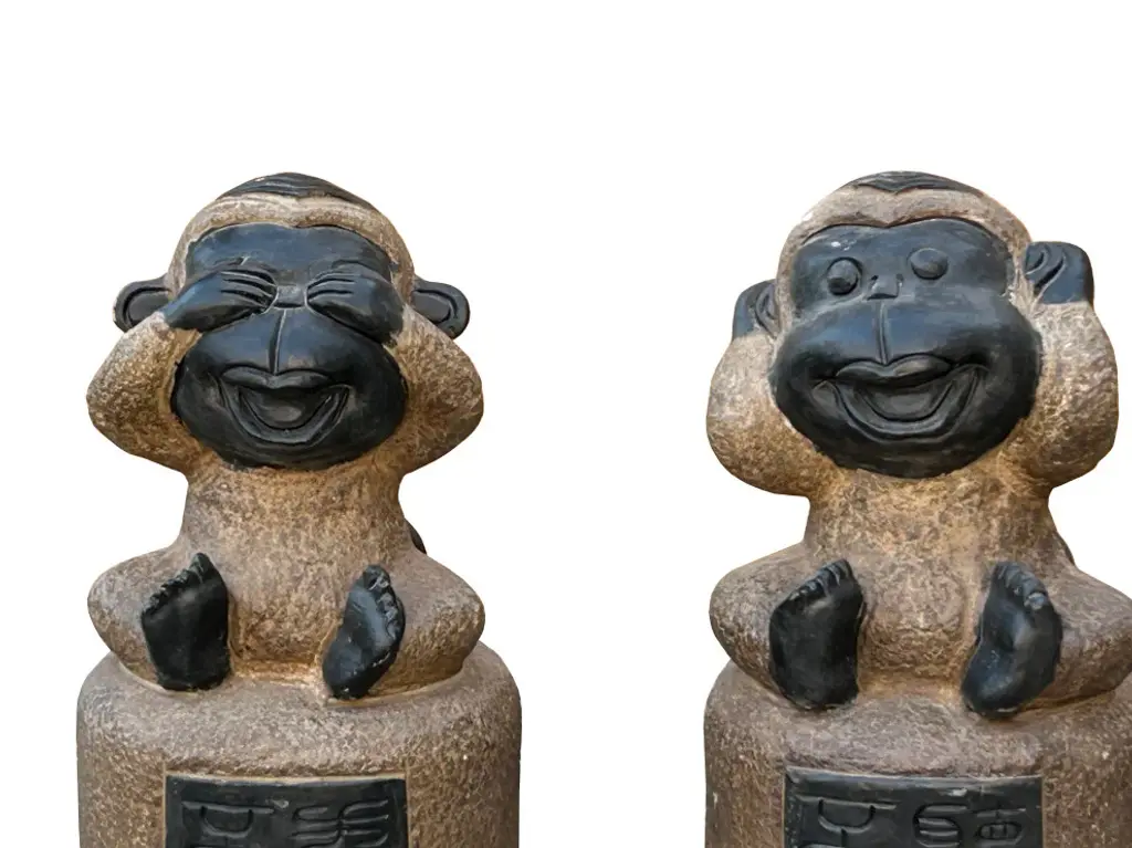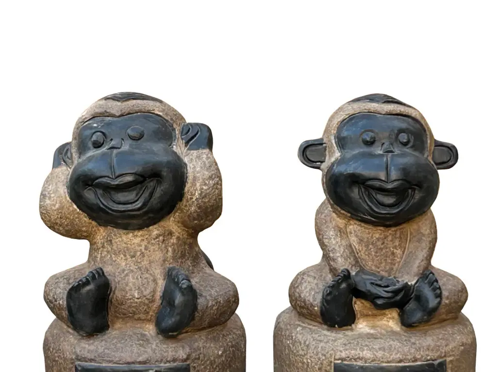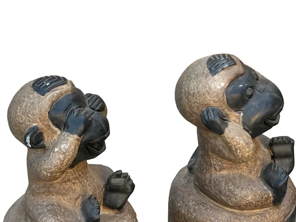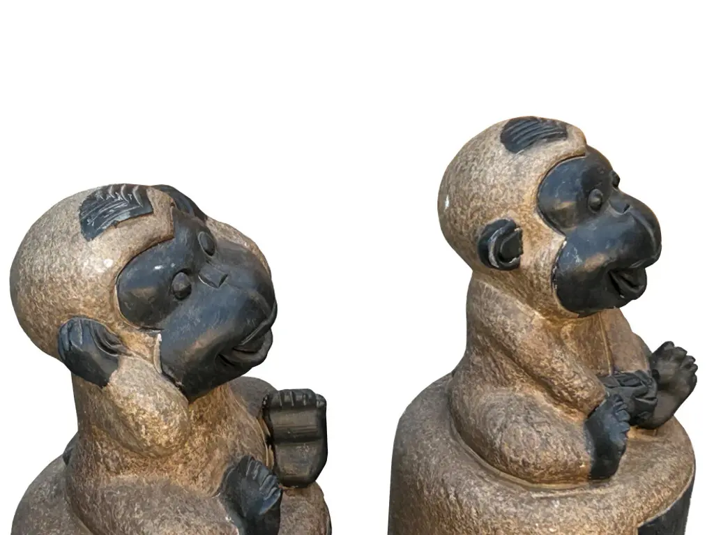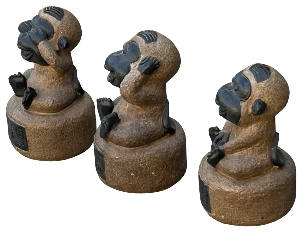Bring a touch of whimsy and wisdom to your home or garden with this charming set of 3 Brown Stone Body Black Face Artistic Monkey Statues. Inspired by the Japanese proverb "See no evil, hear no evil, speak no evil," these playful monkeys are a delightful reminder to stay positive and mindful. Crafted with intricate details and a rustic finish, these statues are a unique and eye-catching addition to any space. Whether you''re a fan of Asian culture or simply appreciate quirky decor, these monkey statues are sure to bring a smile to your face.Keywords: monkey statue, three wise monkeys, Japanese proverb, garden decor, home decor, stone statue, rustic decor, Asian decor, Feng Shui.Dimensions: Dia 8"x h14"Origin: ChinaMaterial: StoneCondition: Natural stone marks, may have minor chip marks at the bottomUSA domestic continental buyers of 48 states pay $300 shipping (buyers of Hawaii, Alaska, US Islands, Florida Keywest, and Canada pays the extra shipping cost). Insurance and handling charges are already included in the shipping cost. In-store pick-up is highly welcomed if you are in San Francisco Bay Area. (No charge)