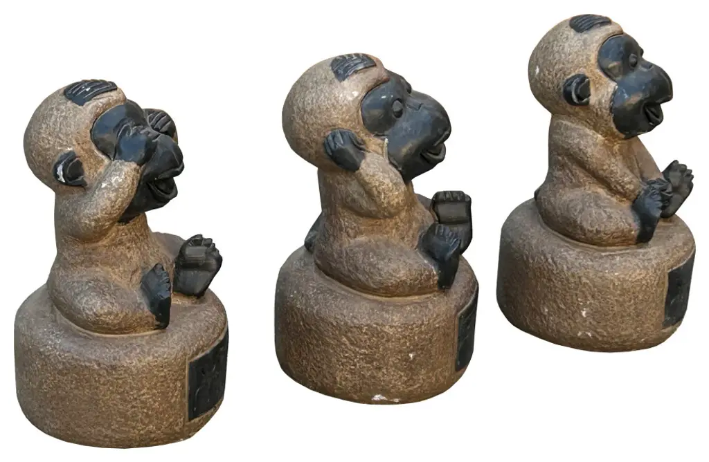 Set 3 Brown Stone Body Black Face Artistic Monkey Statues Hws4828