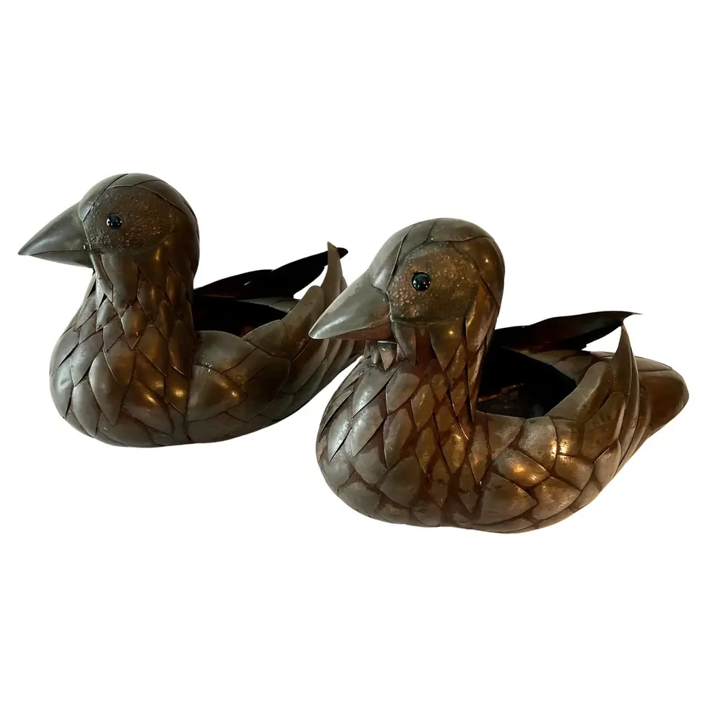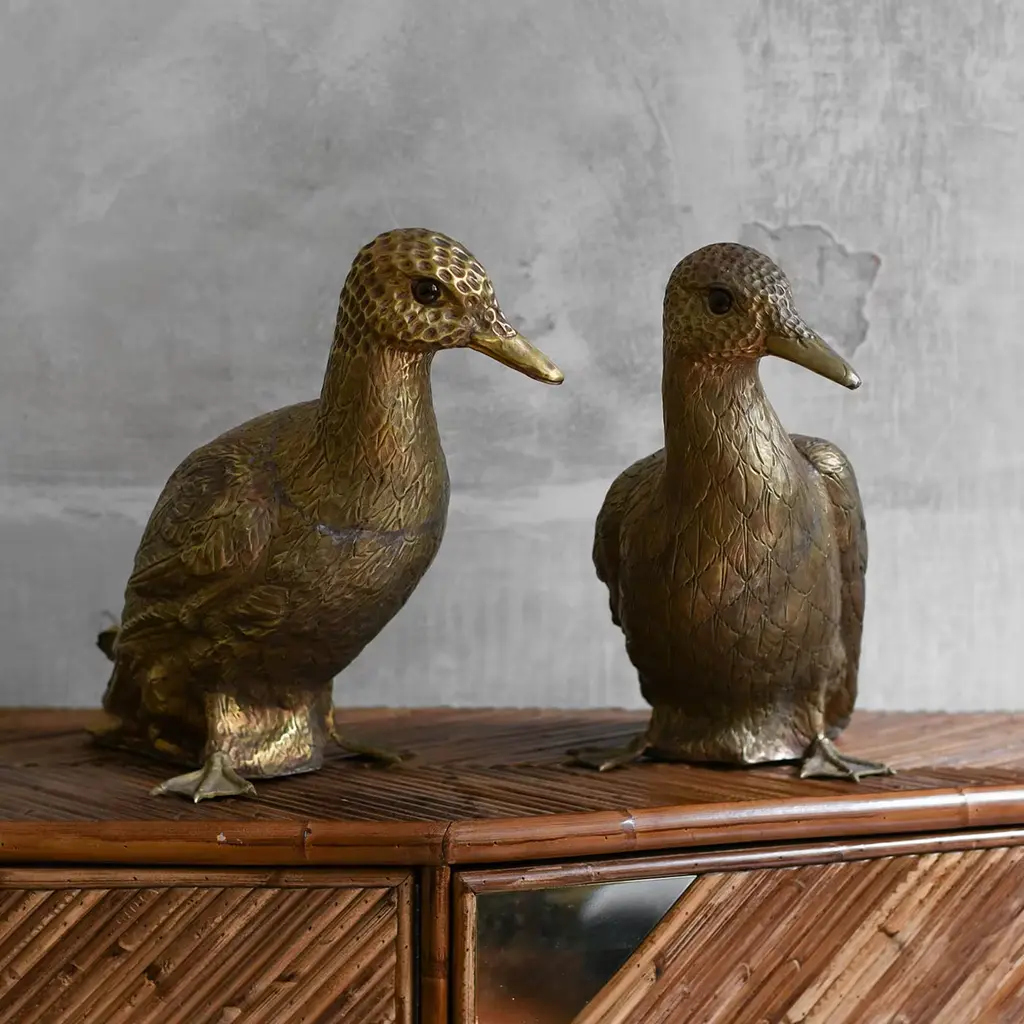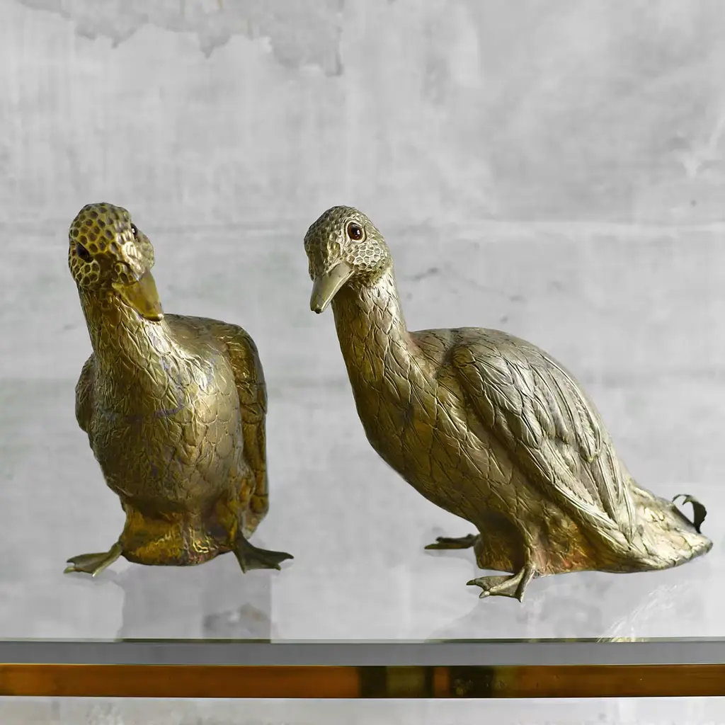 Set Of 2 Brass Duck Sculptures