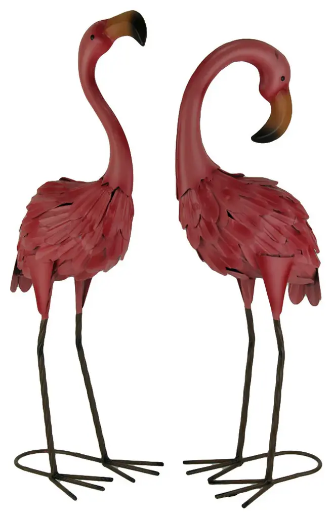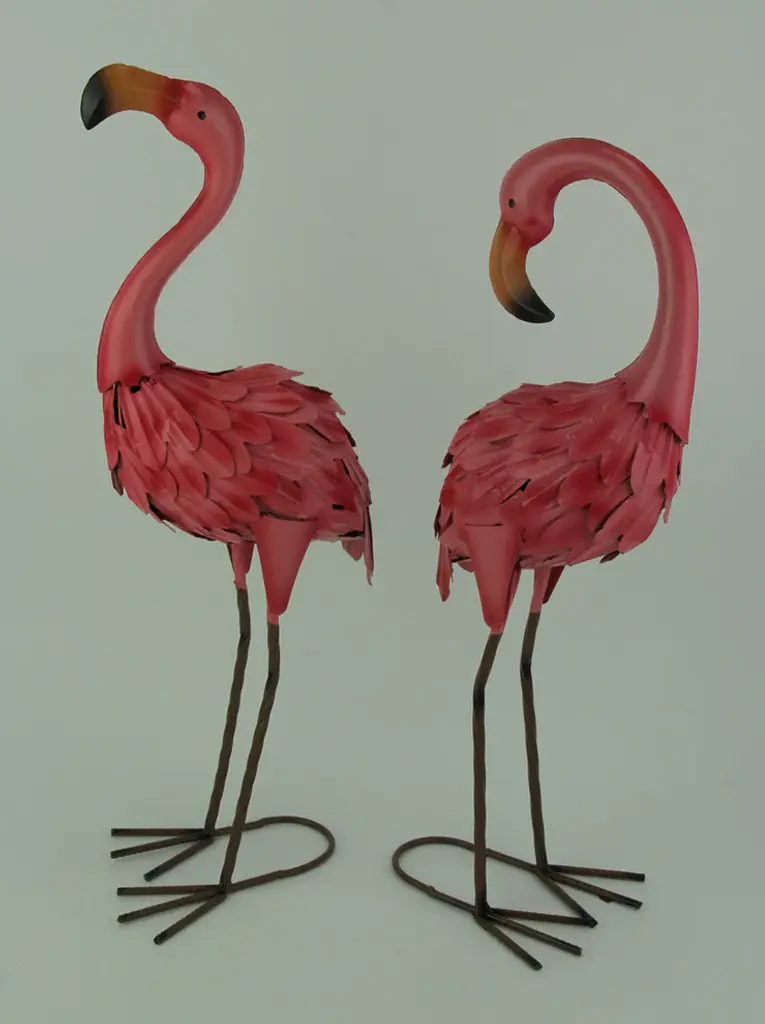 OVERALL SIZE - 21.5 Inches Tall,8 Inches Long, 5.75 Inches WideHand Crafted Of MetalBeautiful Satin Pink FinishFor Indoor Or Outdoor DisplayMakes A Great GiftThis amazing pair of pink flamingos is handcrafted with metal, a medium suited for showcasing their graceful legs and beautifully elongated necks. Perfectly blending with traditional and modern decor, they are an elegant addition to an entryway, a garden of green, or a field of flowers. This wonderful pair is hand-painted in exquisite satin pink, with accents of black, yellow, and brown. Each flamingo measures approximately 21.5 inches tall, 8 inches long, and 5.75 inches wide. Whether placed by a pool, a pond, or on a porch, these beautiful birds are sure to grab attention and make a great gift.