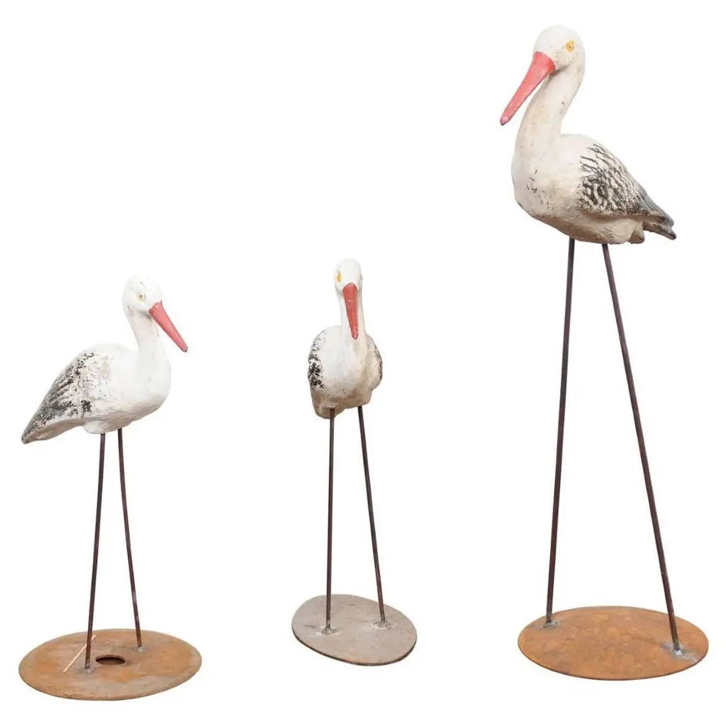 Set Of 2 Decorative Metal Pink Flamingo Yard Statues
