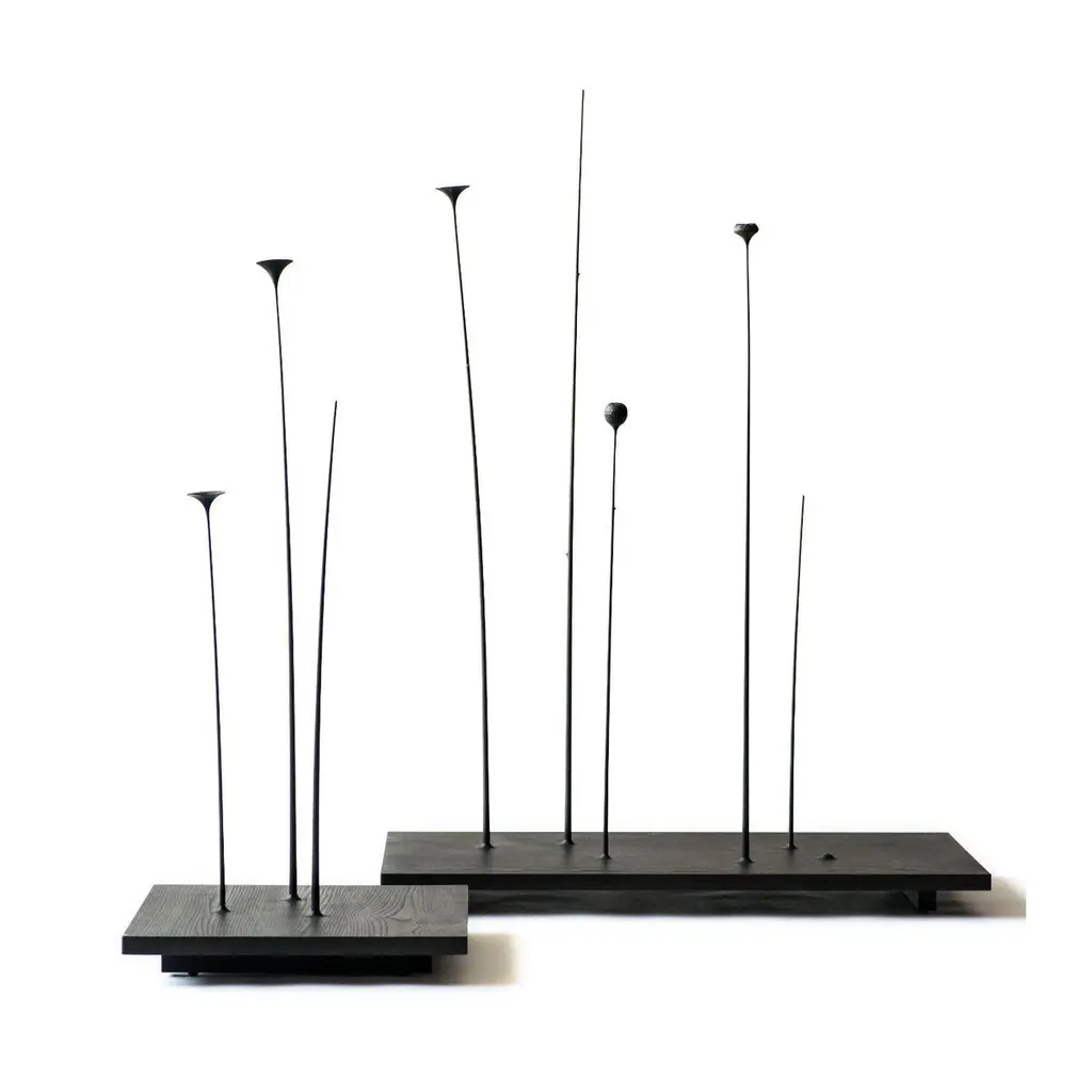 Set of 2 fiori sculptures by Antrei HartikainenMaterials: Flowers (Linden wood), baseplate (Ash/maple)Dimensions: W 120 x D 60 x H 150 - 170 cm, W 60 x D 60 x H 150 - 170 cmThe Fiori sculpture composes of slender-stemmed wooden flowers, which variously grouped, capture the moment of calm and freedom sometimes experienced in nature. Each flower is handcrafted using a variety of techniques. The sculpture can perform many roles: a sole sculpture tenderly comfortable in its loneliness or a group of sculptures growing into a striking group as an eyecatcher in a space. It lives with the changing demands of its environment.Antrei Hartikainen is a master cabinetmaker and designer from finland known for his exquisite works in wood. The award- winning pieces, including functional products and pure art works, achieve heights of sensuality, elegance and craftsmanship. These important factors are emphasized in Antrei Hartikainen’s work, which constantly seeks to challenge and blur the traditional categorizations between functional objects and visual arts. Hartikainen’s sculptural approach can be studied through his organic body of work, which simultaneously highlights the inspiration drawn from his material of choice, wood. Antrei hartikainen has shown his works in numerous solo and group exhibitions all over the world . Antrei have been awarded with prize as a Young Designer of the Year 2018 in Finland and shortlisted as Emerging Designer of the Year 2019 by Dezeen awards.