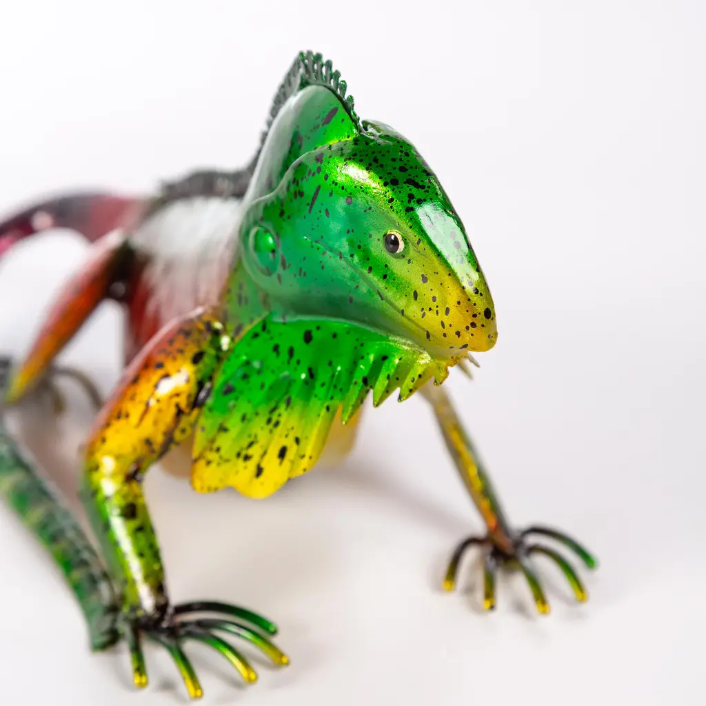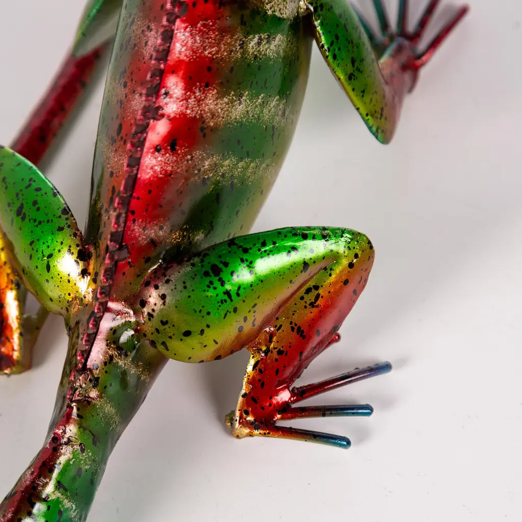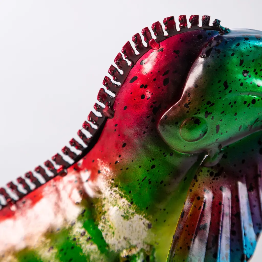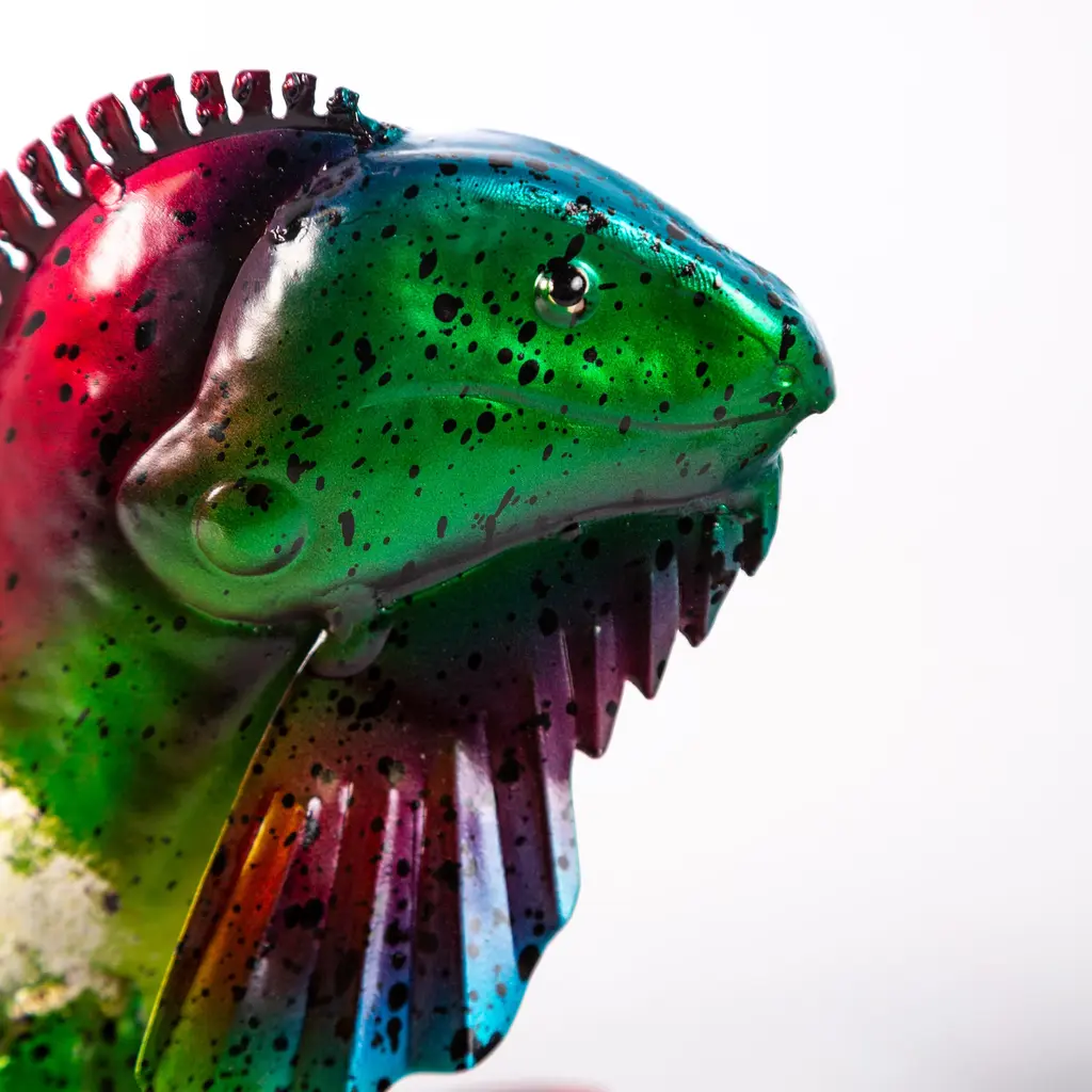 Did you know a group of iguanas is called a mess? These Colorful Iguana Garden Statues seem to be telling us that a little mess in your garden can still be beautiful! This eye-catching pair is handcrafted from reclaimed metal by our skilled artisan partners in Bali, Indonesia. The iguanas are then hand-painted in shimmering neon colors, ensuring they are ready to stand out among your plants or other decor. You will love the charming details of this pair from the rainbow of colors to the curling tails and spikes on each of their backs. Add some pizzaz to your space with these reptile friends! Wind & Weather Exclusive Design.