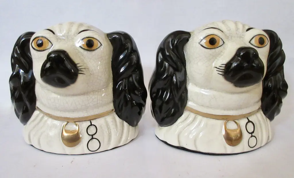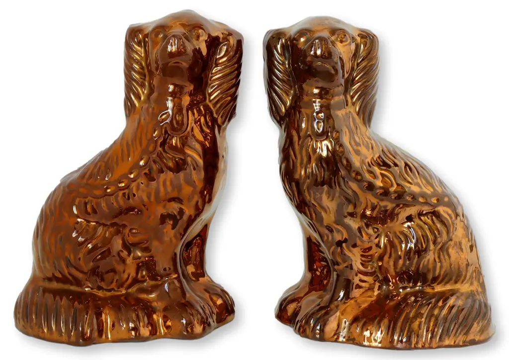 Set Of 2 Staffordshire Dog Statues (Left Facing, Right Facing) Hand-Painted Ceramic