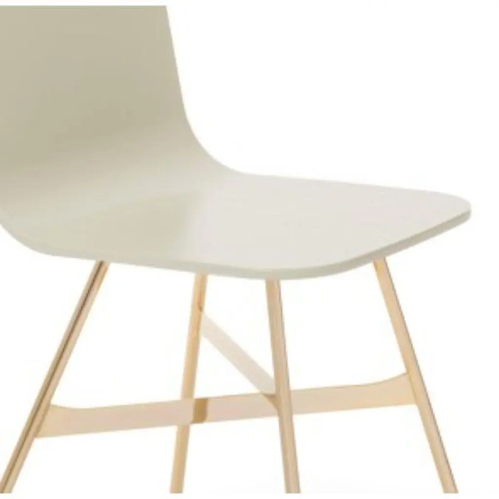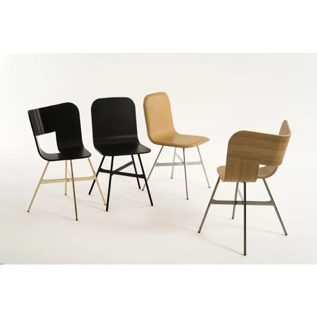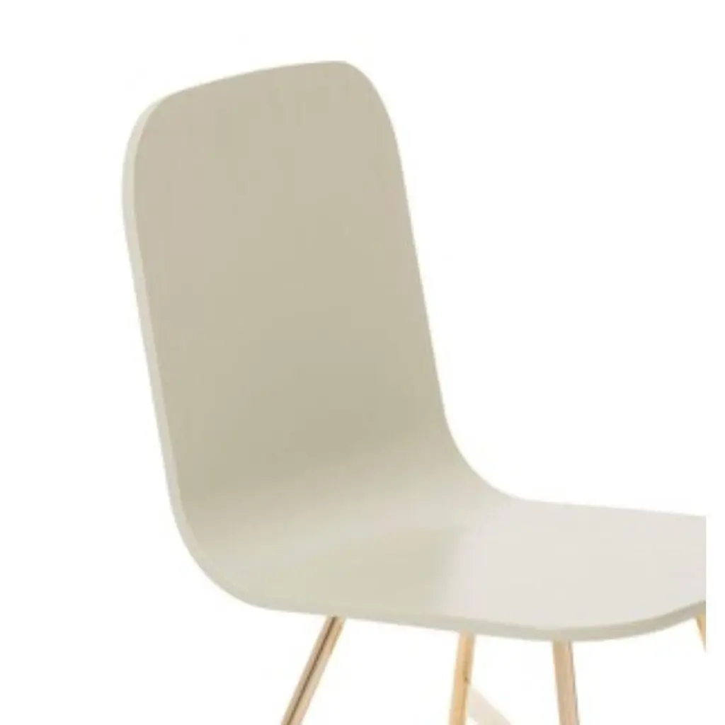 Set of 2, Tria simple gold, ral color seat by Colé Italia with Lorenz & Kaz (Legno_White)Dimensions: H 82.5, D 52, W 58 cmMaterials: Plywood Chair; Golden Metal LegsAlso available: tria; 3 legs, with cushion, black, gold, simple, stool, upholsteredTC: C.O.M. fabric - send us your own materialCA: Cat A - Angel (polypropylene), Ganesha (synt. leather), Nord Wool (felt)CB: Cat B - Tiffany (polyestere), Lana (aquaclean)CC: Cat C - Velvetforthy (Velvet), Topia (wool), Novum (Wool), Opera (felt)CP: Cat P - Milano (full grain leather)H.82,5 D.52 W.61 Weight 6 kg Box 2pc: 16 kg Vol 0,36 mcFabrics: see fabric samples catalogueOur iconic chair designed by German duo Lorenz + Kaz. Tria is a table chair, at the same time many people place it asa sculpture, as ornament in an entrance, a bedroom or in a living room. It recalls the impossible forms of Dutch graphicartist and engraver Maurits Escher, defining itself in a game of twists and elusive leak. The corolla-shaped shell can beused in two different seating positions, center or side, in this case with one armrest. The shell is composed of three equal elements in bent plywood assembled together and veneered with a special wood finishing ivory/ black stripes.It is also available in veneered oak, natural or stained open pore in different colors, as well as customized colors (min. 4units). Available with 3 or 4 solid wood legs, or 4 metal legs in different finishings. For a better back comfort if you useTria chair in center position, for dining or studying, you can add a back cushion specially designed for it, upholsteredand coated with a wide range of fabrics.Colé is a young Italian design brand, with a high-end production 100% made in Italy. Born from the experience of Matteo De Ponti, architect, who grew up in one of the most outstanding Milanese design families, and the artistic sensibility of Laura Macagno, degree in Economics and passionate of art and design. Our mission is to create design icons, beautiful and comfortable pieces that can stand the test of time, furnishing houses of international and sophisticated clients, and realized with craftsmanship, thus unique. “We love objects which own deep roots, excellent quality, and a strong evocative power. Archetypal forms dressed with new beauty without losing their classical composure”.Our expressive research is inspired by the utopian force of Italian eminences grises architects and designers of the ’50s, the Scandinavian design, the Bauhaus, ethnic handcraft and houses of famous writers of the XX century, all different as a style but united by the intense soul of those who worked and lived there.