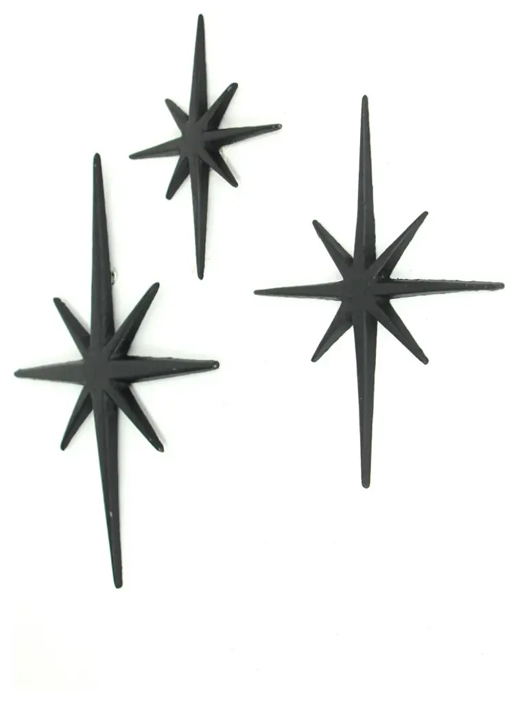 Set Of 3 Black Cast Iron Starburst Wall Hangings Mid Century 8 Pointed Stars