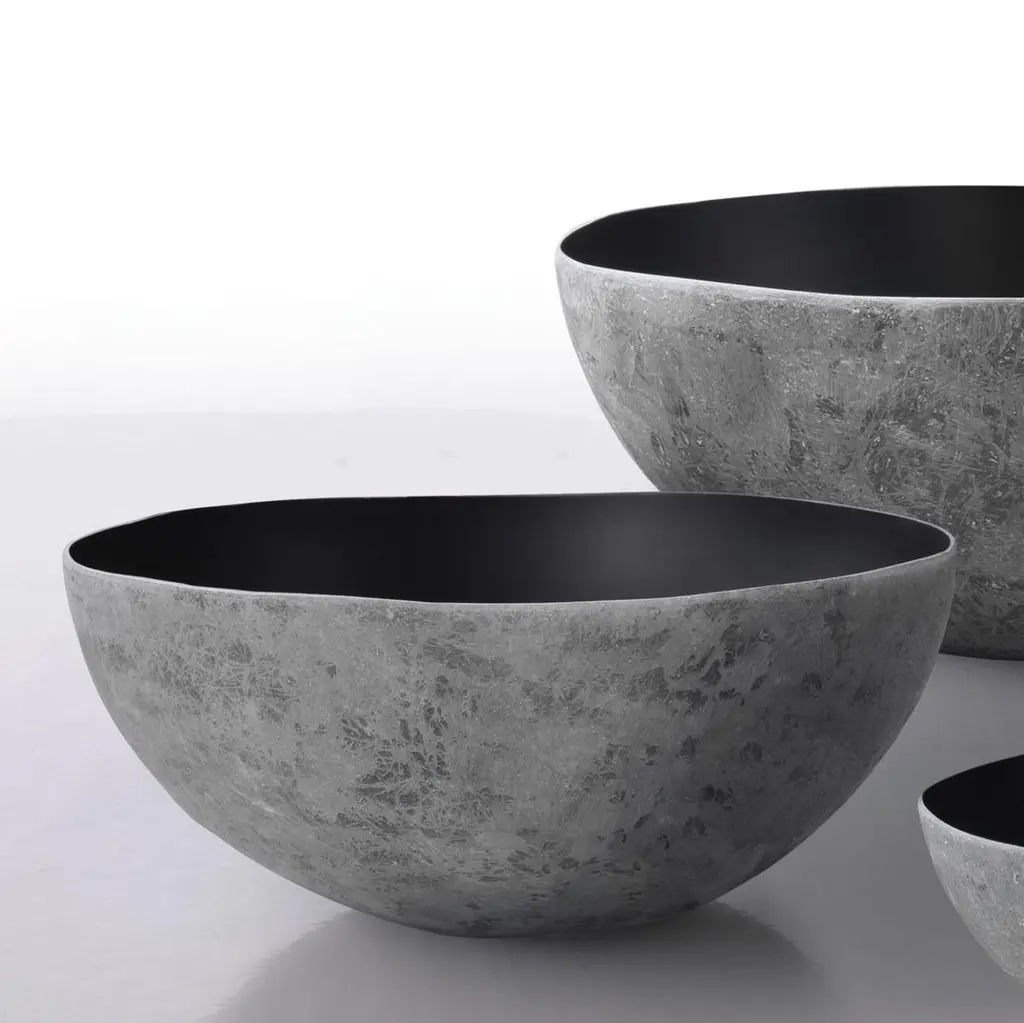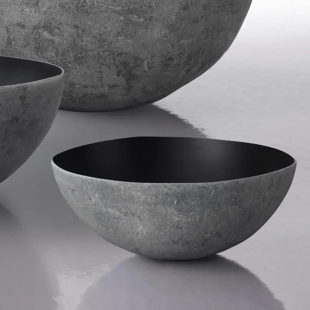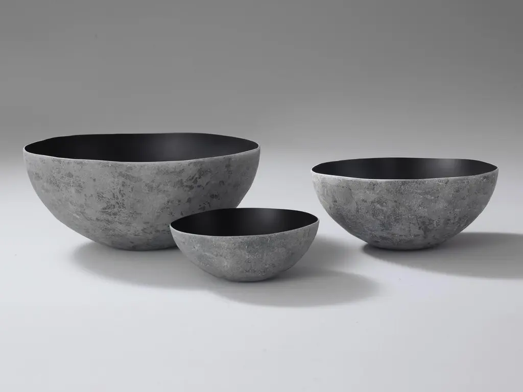 Set of 3 stille bowls by ImperfettolabDimensions: Ø36 x H 27 cmØ28 x H 13 cmØ20 x H 9 cmMaterials: FiberglassImperfetto LabWho we are ? We are a family.Verter Turroni, Emanuela Ravelli and our children Elia, Margherita and Eusebio.All together, we are separate parts and their expansion.The laboratory is in the care of Verter.From the sketch on paper he mixes materials, shapes and colours to the definition of the object.His intuitive and visionary research is performed with the complicity, recognition and practical support of his brother Erich.Emanuela is the voice of a vivid and silent work.She connects Imperfettolab with the other and with the rest of the world, respecting its nature and identity.She watches over its wholeness and authenticity.The playful spirit is entrusted to our children.They are the ones who test our works, certify their durability, functionality and enjoyment.We believe it is their expression, after all, that validates and makes our work universal.Since 1992, our thoughts and actions have moved, grown and taken shape in the land of Romagna.Between hills of cherry and olive trees, cultivated plains and piles of recyclable steel and iron.In between, the ancient Roman road via Emilia.A contrasting and mutating landscape that reflects in our furnishing sculptures.Ours is an open space, the times of art and life seamlessly merge.