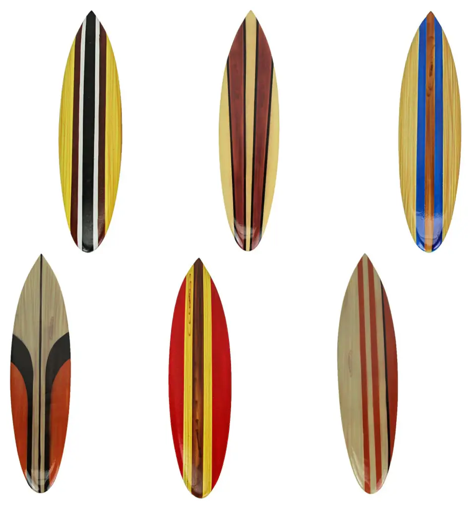 Set Of 6 Handcrafted Wood Surfboard Wall Sculptures Beach-Themed Home Decor