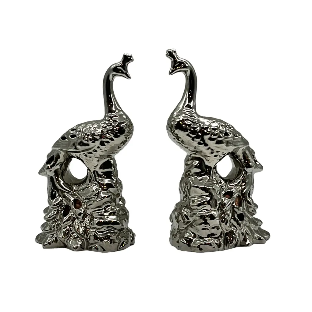 Set Of Graceful Silver Finish Peacocks Resin Statue Size: 11" X 6" X 28"h