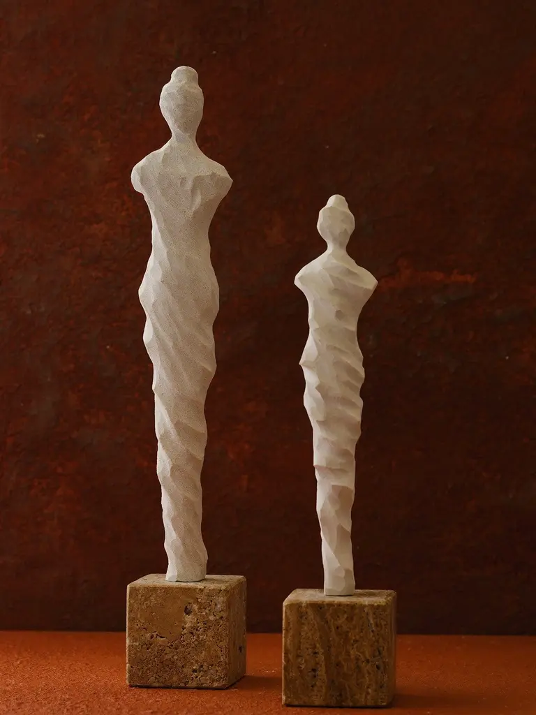 Set Of Two Limra Stone Woman Sculptures – Hand-Carved Travertine