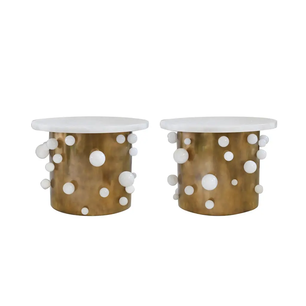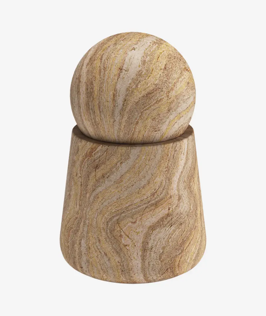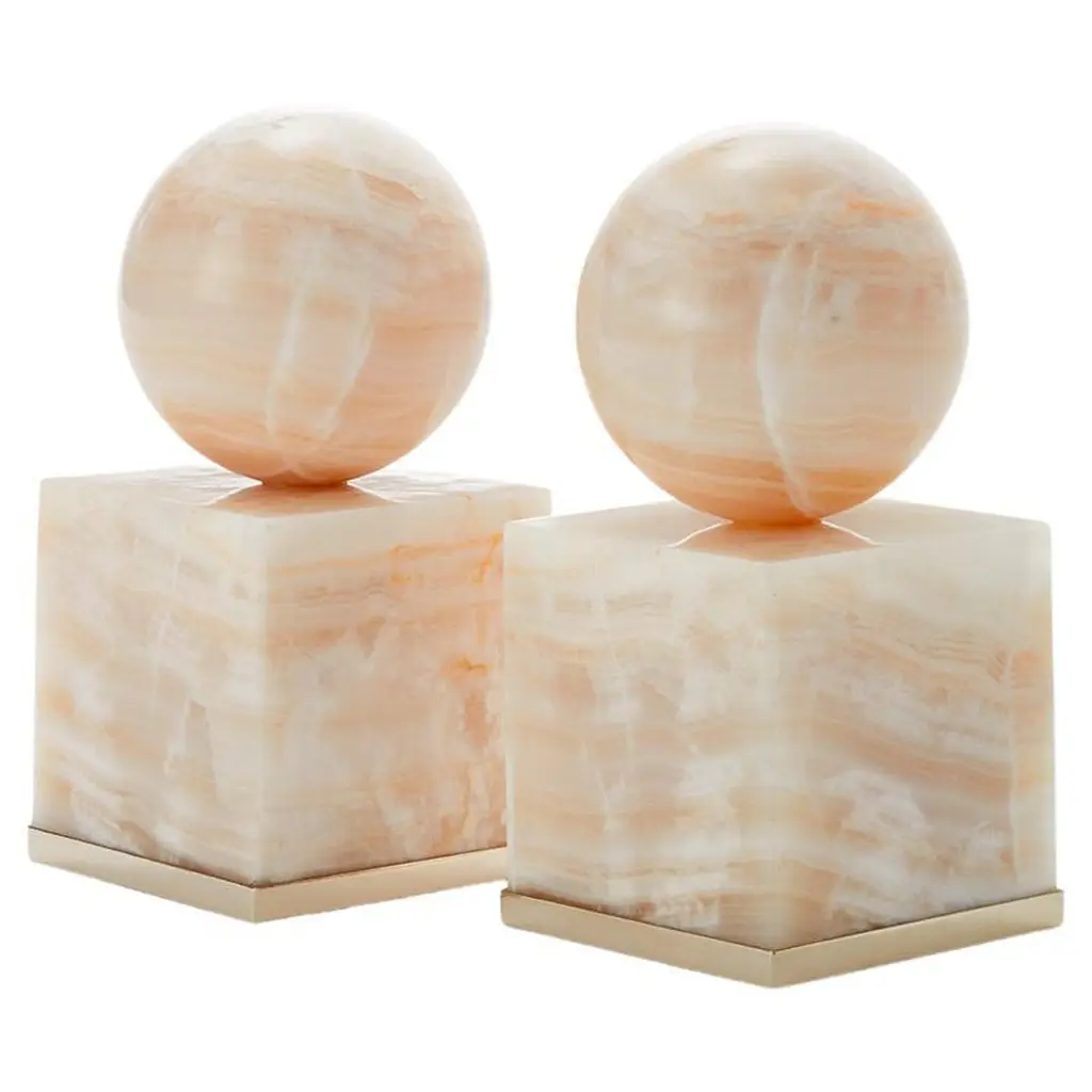 Our stack sphere sculptures can be used as a decorative element on a coffee table, bookshelf, console etc. Their warm hue and curved lines add the right amount of visual interest without overwhelming additional decor. The mix of marble and resin make an incredible combo, a mix that is modern, fun and harmonious. You can place the small sphere on top of the big one or you can separate them and create a new piece.They are sold by set of two in different sizes.Material: travertine marble and traslucid brown with marbled brown resin Measurements:Small: Travertine sphere 10 cm diameter and resin sphere 5 cm diameter.Large: Travertine sphere 12 cm diameter and resin sphere 5 cm diameter.Designed by Paola Valle and manufactured in Mexico City by extraordinary artisans. Our goal is to work hand by hand to create outstanding pieces that will represent our passion.Please avoid placing your resin pieces in direct sunlight to avoid discoloration. All resin items are strong and durable but should be treated with care as they can break if dropped or knocked against a hard surface. Colors may vary slightly to the item shown in previous photos, as everything is handmade.Due to the nature of the material every piece will be unique and aesthetically different.