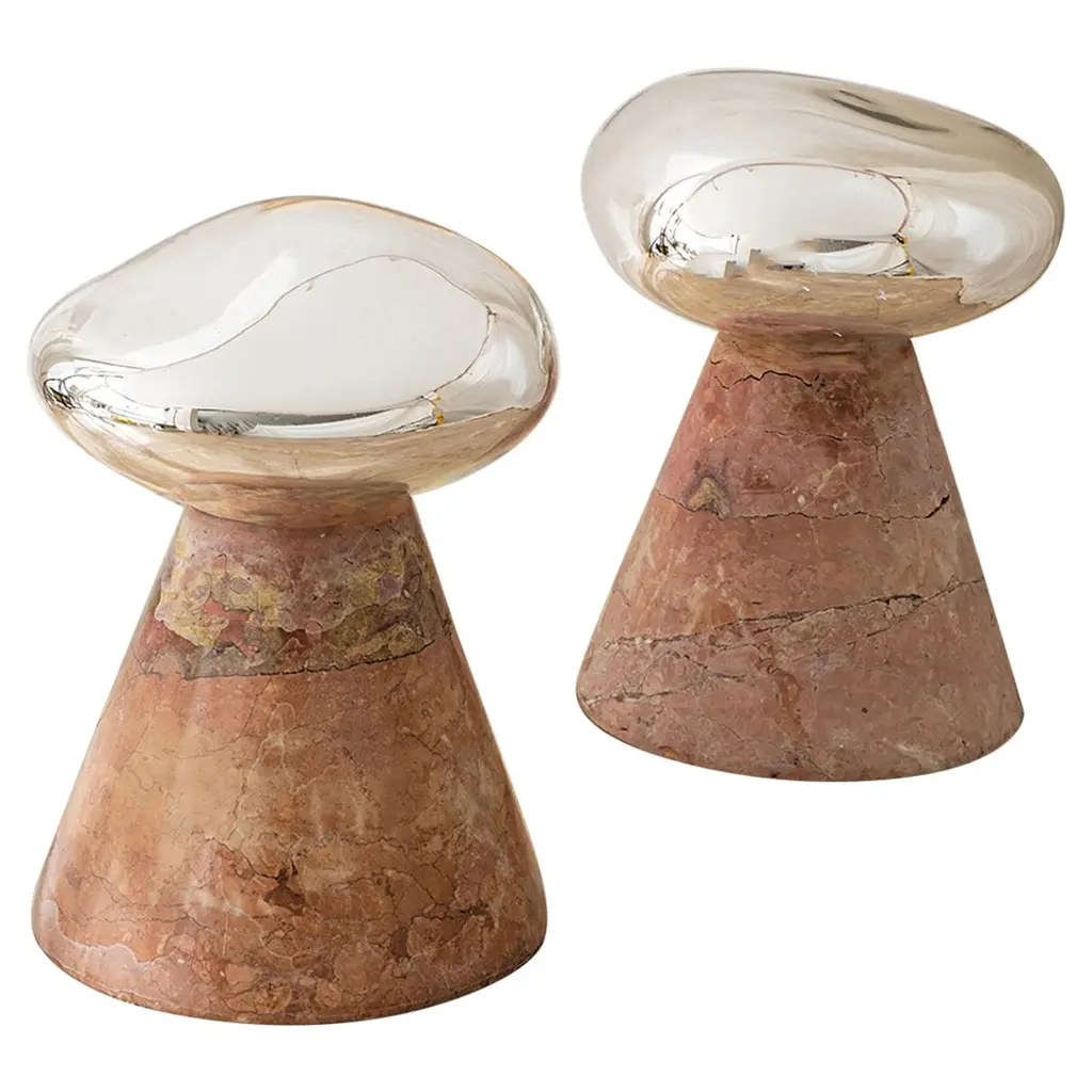 Set Of Two Travertine Marble & Resin Stack Sphere Sculptures By Paola Valle