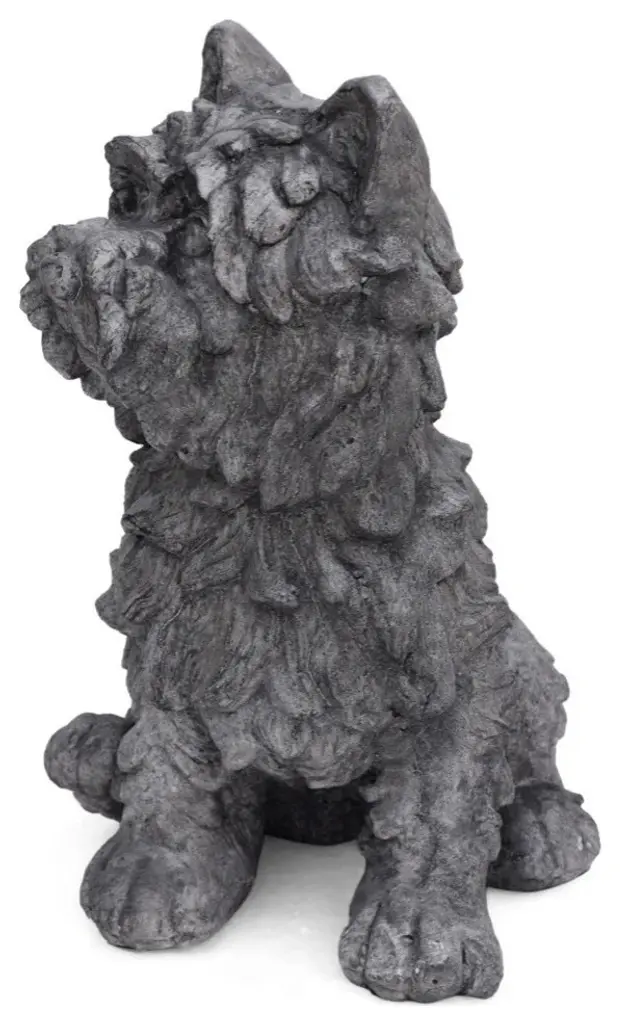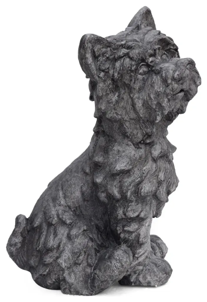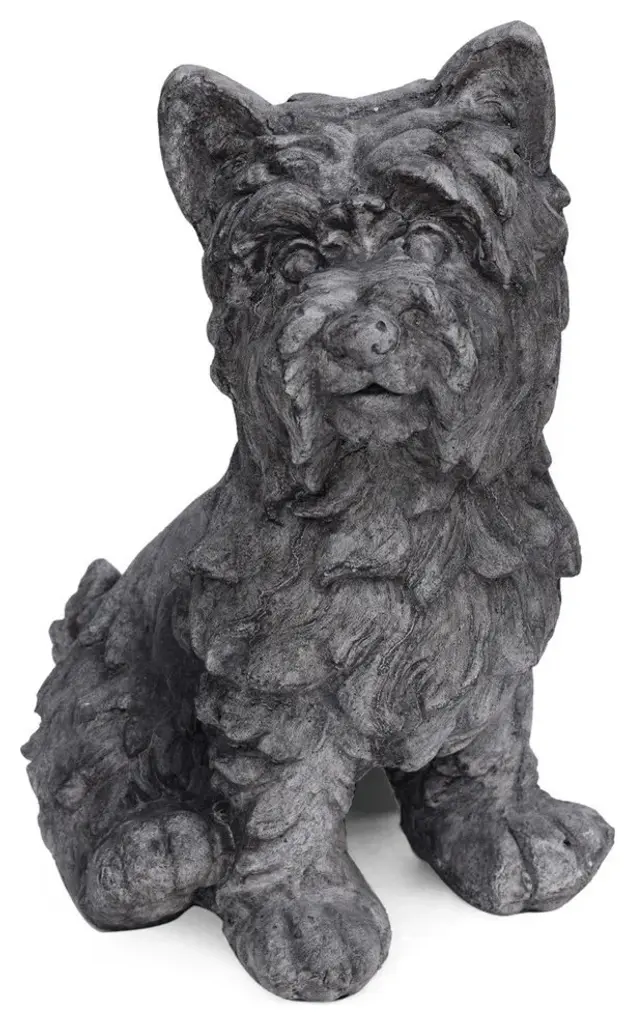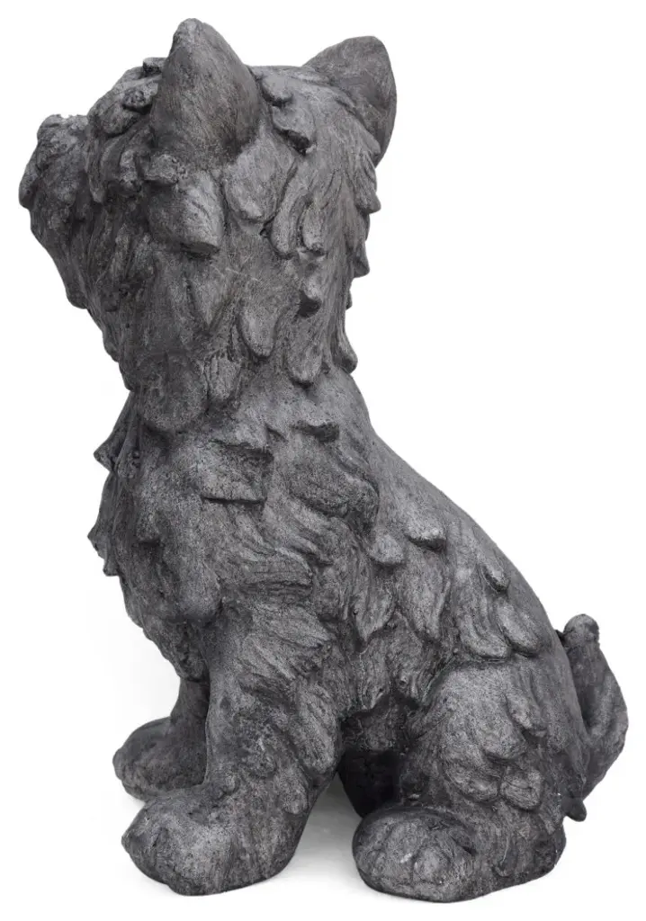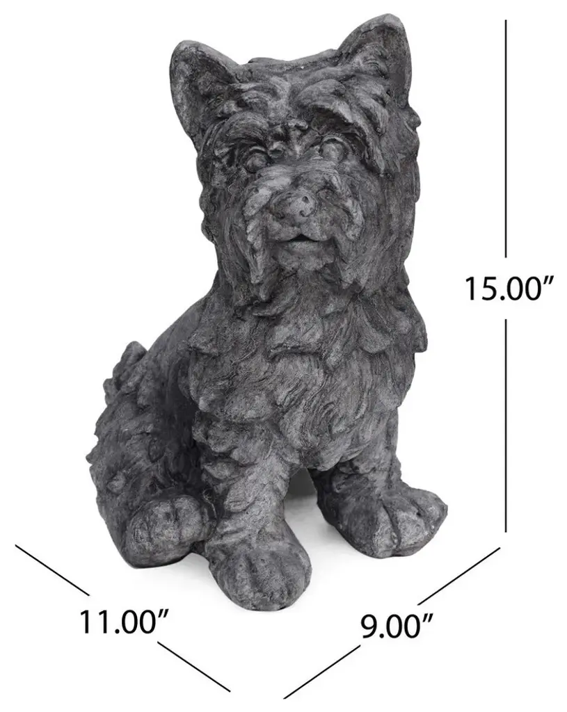 Fall in love with our adorable puppy statue that will bring your outdoor decor new life. Carefully crafted from cast stone, our garden statue features an incredible dog design consisting of gorgeous details such as tufts of fur, round paws, and intricate facial features. This statue offers a durable structure and weather-resistant properties making this a perfect addition to your backyard or patio space. Finished with a neutral antique gray wash, this exquisite garden accessory will easily bring your decor to the next level.A TOUCH OF PERSONALITY: Bring your garden to life with our delightful dog statue. With fun and charming aesthetics, this accessory will be sure to enliven any backyard or patio space. TERRIER DOG: This garden statue features an adorable terrier design, giving your outdoor space a stunning accent. This loveable design offers intricate details, such as waves of fur and delicate facial features, for a hand-crafted touch.CAST STONE: Constructed with lightweight concrete, this garden statue offers varying textures to create a furry look. This provides a highly durable structure that is also resistant to outdoor elements.ANTIQUE GRAY FINISH: Our garden statue is finished with an antique gray wash, giving this piece a stone-washed look. This neutral color gives your outdoor space an extraordinary yet understated accent.DIMENSIONS: Choose an accessory that is the perfect size for you and your outdoor space. This garden statue is 15.00" H x 11.00" L x 9.00" W. You will love how much your space can transform with the simple addition of this accessory. Includes: One (1) StatueMaterial: Cast StoneFinish: Antique GrayNo Assembly RequiredHand Crafted DetailsDimensions: 9.00 inches deep x 11.00 inches wide x 15.00 inches high