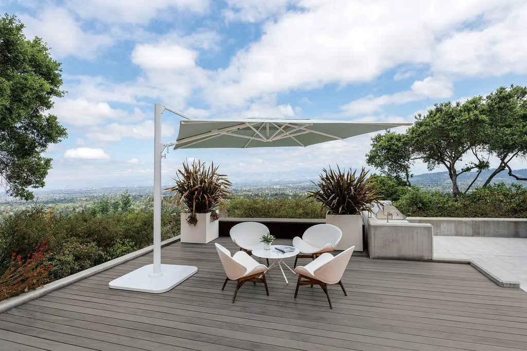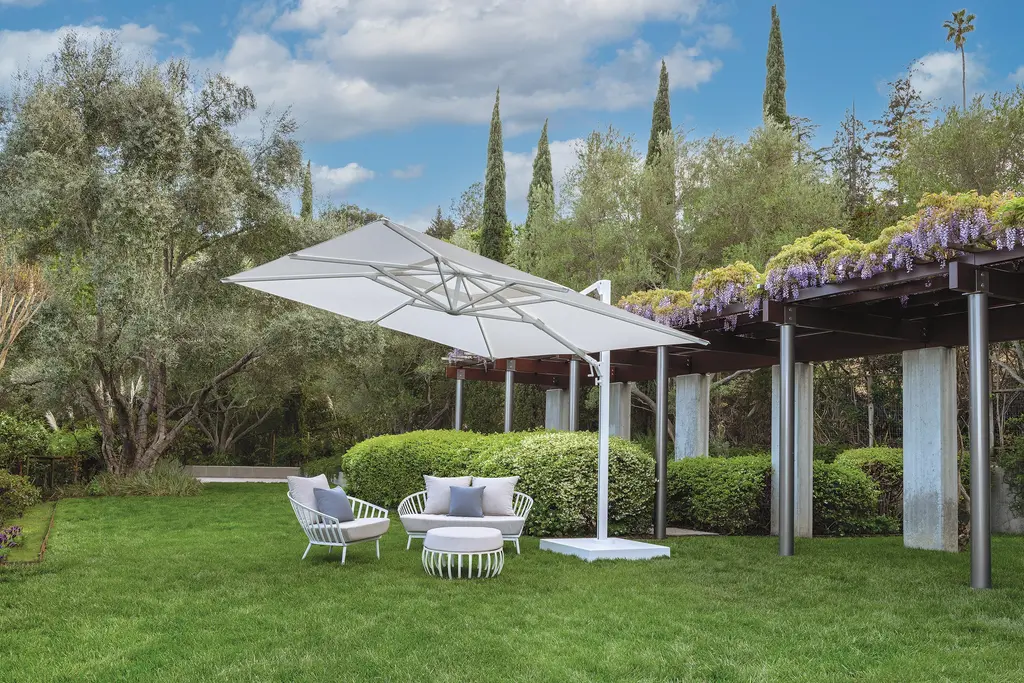 The Polaris is an elegant and robust side post umbrella providing larger size ranges. With its infinite tilt functionality, sophisticated styling, and superb construction, the Polaris is the true definition of form and function.The architectural essence of Shademaker umbrellas began with a unified design, forms, and structure. From this foundation, Shademaker elevates its offering of signature looks by introducing well-crafted styles with advanced functionality and durable materials. Every umbrella embodies true beauty and elegance.Titan Base Note: The Titan Bases hold up to 32 concrete pavers (12”x12”x1.5”). Both are sold separately.