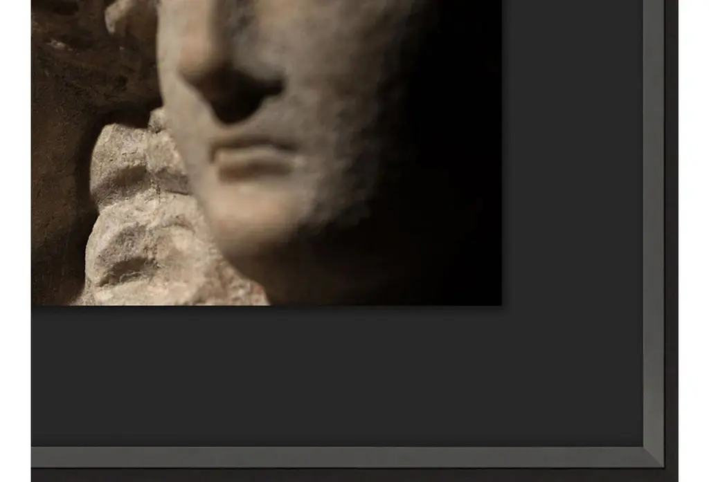 Designed by us and available only at One Kings Lane: This contemporary photograph of ancient Roman busts is printed on archival matte paper. Floated over a mat and displayed under glass in a beveled black frame, this piece arrives ready to hang.