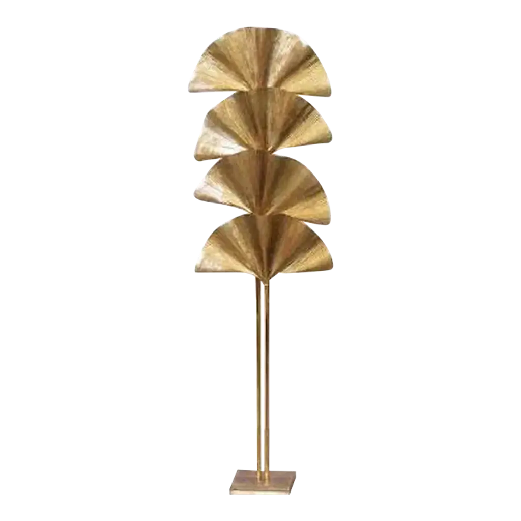 The ginkgo leaves are handcrafted in brass to create the flowing shape of nature's design of the unique sculpture mounted on black marble.