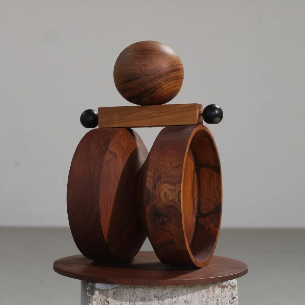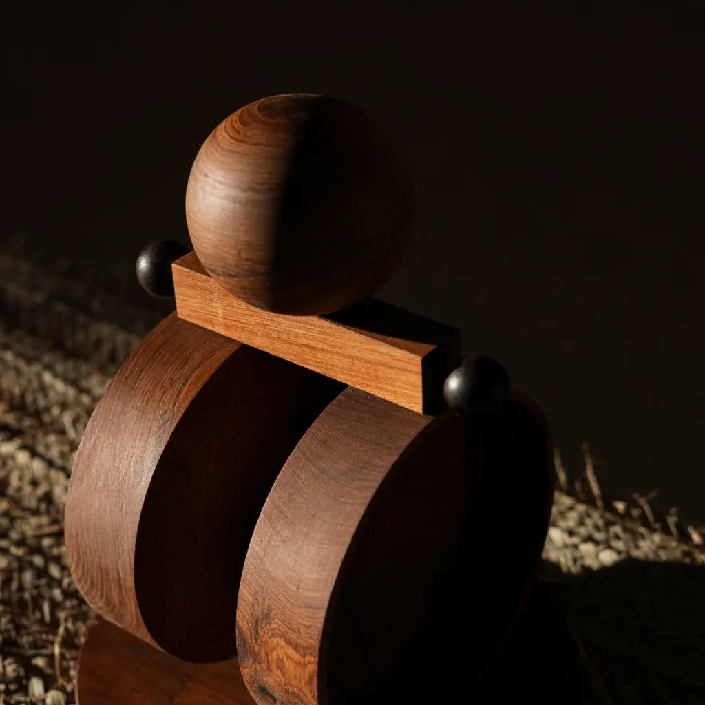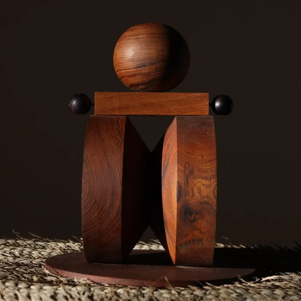 Shibui 16 Sculpture by WANASDimensions: D 28 x W 28 x H 36 cm.Materials: Brass, rosewood, teak wood, and wood.The size is customisable on request. Please contact us.Why is it that the simplest of things manage to stay with us for such anextended period of time? There is beauty in stillness, and there is beauty in a humdrum existence.Shibui collection is a portrait in the landscape of the exquisite ineffable andthe unseen. Let it fold and unfold within you. It is an assemblage of sixteen sculptural forms, each a marriage of the same shapes in different dynamics.It’s an invitation to explore, from us to you. WANAS (We Are Now A Store), founded in 2022, is a design dossier where possibilities are limitless andmaterial explorations find a home. All of the objects and more are created, designed, sampled, and composed by the often-overlooked spontaneity. We’re innately a visual design studio where we experiment with the architecture of simple shapes and forms. Spontaneity, perspective, play, and infinite but diverse scalability find us at the heart of what we do. Geographically, we’re nestled in the landscapes of India, where the crafts of the artisans give spirit to the WANAS objects. We have traversed from the eastern tip to the west, and our objects have found home in different intersections of the longitudes & the latitudes.Swim through our objects and take a peek at our thoughts.