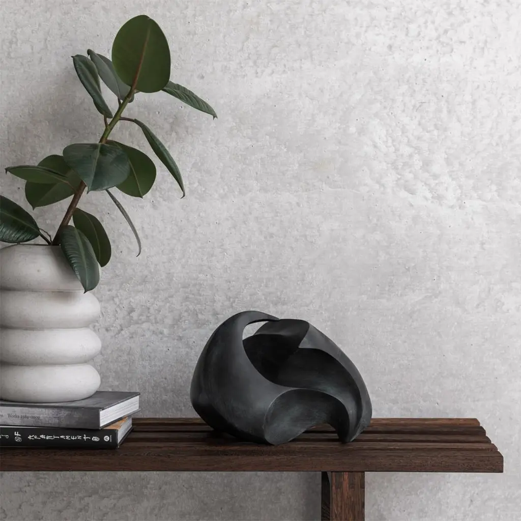 Sculpture shift bronze all in solid bronze in dark blue-green finish.