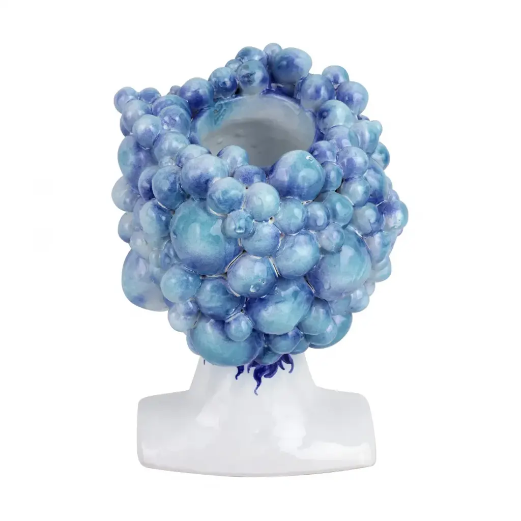 A showpieces for your home or garden, the Sicilian Heads Blue Bubbles Head brims with impeccable detail and rich, lush color. The tradition of Sicilian Heads dates back hundreds of years, and these sculptures honor the beauty and strength of women. Since 1983, Vietri has specialized exclusively in Italian handcrafted ceramics, stainless and pewter flatware, mouth blown glassware, lamps, urns and planters. Families of artisans with 3 or 4 generations of history create these special pieces using centuries-old techniques. The subtle color from a paintbrush and the curving stroke of the artist's hand are never repeated in quite the same way, making each piece truly unique.
