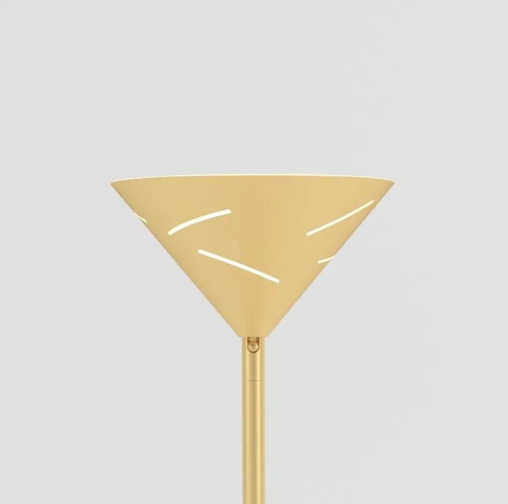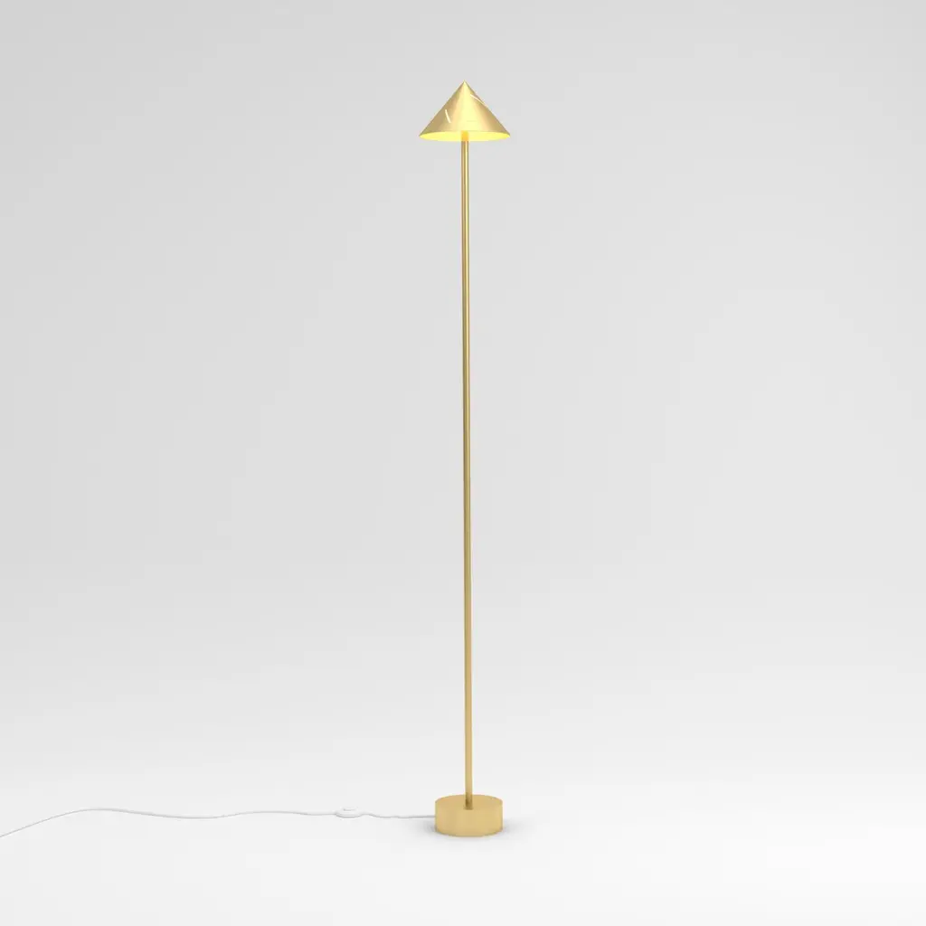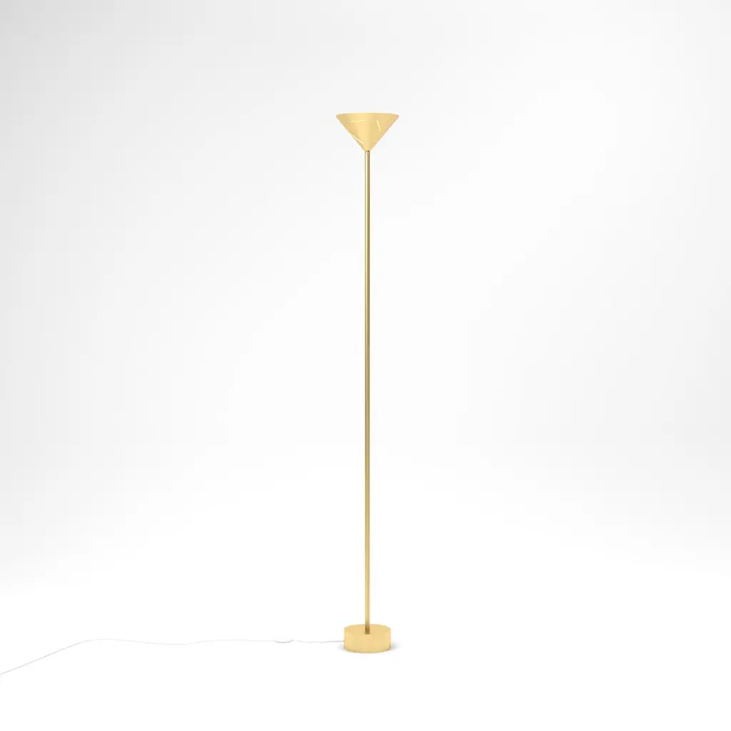 Silver Brass Floor Light II by Atelier AretiDimensions: D 20.5 x H 174 cm.Materials: Brushed brass.Available in white, black, color, or brass.Available in cone up or cone down versions.All our lamps can be wired according to each country. If sold to the USA it will be wired for the USA for instance.Atelier Areti was established by sisters Gwendolyn and Guillane Kerschbaumer.Gwendolyn and Guillane’s background is in visual arts - drawing and sculpture, architecture, and design. Their work reflects this interest in both the object and space, exploring and existing between the sculptural quality of the object and its spatial dynamic.‘We strive to develop something new and beautiful through our work. We are driven by curiosity and the desire to explore works that touch us on a deeper, direct emotional level as well as engage us in a more conscious conceptual way.These artistic ambitions need to be realized and developed in the actual material product. The material realization gives the design it’s place in our daily life. A well done object will be valued for a long time; we aim to create pieces that remain relevant through their beauty, function, and quality.’
