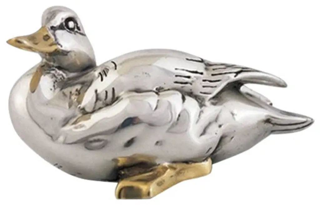 The silver plated goose sculpture from the D''Argenta Collection is accented in 24K gold. The soft down of a goose is nearly touchable in this wonderfully created piece. This is a wonderful gift for the bird lover and curio collector in your life. Weighs 0. 51 lbs. and measures 2. 36" x 4. 33". About D''Argenta Silver EleganceOrnate in design, exquisite in detail, and beautifully elegant, the Sterling Silver Plated products created by the artists of D''Argenta Silver Elegance are the perfect heirloom quality pieces for any home. The distinctive sterling silver designs stand out against the black neillo inlay and the intricate detail is breathtakingly attractive. D''Argenta Silver Sculptures and objects d''art offer unparalleled excellence in quality and exquisite attention to detail, because they are the hallmarks that have established D''Argenta as a leader in the export of precious metal-finished art for over a quarter of a century. Each of the over 200 limited-edition sculptures, personally signed by the artist, is technically flawless yet competitively priced..the same master-craftsmanship received in pieces that have been gifted to royalty, heads of state and the Vatican. From the surface detail of the innumerable tumuli and broad swells that impart the hides of the elephant collection to the graceful lines that capture the motion of a stallion''s gallop, you will marvel at the beauty of your truly unique acquisition as it graces a special place in your home. Historically, sculptures composed of precious metals were crafted using the traditional hot casting process. 25 years ago, the artisans at renowned metal art company D''Argenta introduced an advanced new metalworking technique that changed the way precious metals are sculpted. D''Argenta''s new method combined cold casting and electroforming to create intricate, finely detailed sculptures. The pieces are initially plated with a . 015 inch (400 micro) thick layer of copper, then plated with silver or (24K) gold at a thickness of . 001 inch (24 micro). Each sculpture''s interior is composed of a polyester fiberglass core that strengthens sleek metal plating. After being formed, each piece is coated with a protective lacquer to prevents tarnishing and maintain luster. This final step ensures that all D''Argenta sculptures, though crafted with fine silver, do not require polish or any type of metal cleaner and can be simply dusted with a dry cloth as needed. Exported around the world and now available in over 25 countries, D''Aragenta''s products have won international acclaim because of their innovative construction and exquisite beauty. In 1981, D''Argenta was recognized with the Bulgarian Government Gold Medal award. In 1992, a D''Argenta sculpture was gifted to His Royal Highness Prince Naruhito of Japan on a visit to Mexico. A nod to the company''s exclusive prestige, D''Argenta sculptures have been gifted to an increasingly long list of dignitaries, including Pope John Paul II, Prince Phillip of England, and his Majesty King Harald of Norway. The gifted artists of D''Argenta include: Manuel Alvarado, Ricardo Del Rio, Enrique Jolly, Javier Arenas Perez, Claudio Rodr