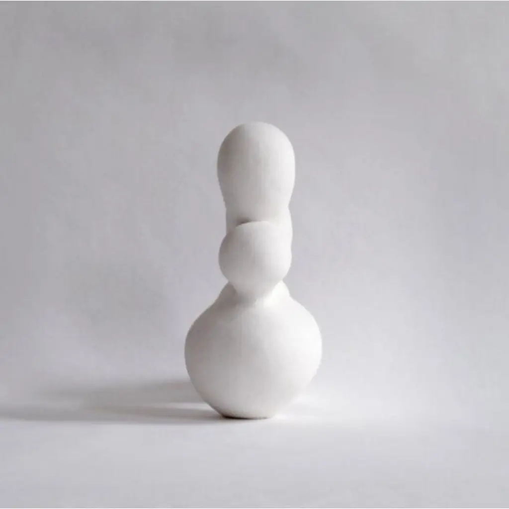 Silver lining sculpture by Elnaz Rafati (Sculpture 05)Dimensions: W 14 x D 33 x H 30.5 cmMaterials: ClayI am an Iranian architect and artist living in NYC. After receiving my architectural engineering degree in Tehran, I moved to Chicago where I received an M.Arch from the UIC School of Architecture. Upon graduation in 2017, I took a job at Studio Joseph and a year later in 2018 I started working at Bjarke Ingels Group where I still work as an architectural designer. Since early childhood I have always been looking for mediums to express creativity and only in 2020, I found the perfect medium: clay. Having been stripped away from social engagements and left alone with my thoughts, I found solace in creating sculptures that connected me to a large audience. At first sight they are playful, blobby and squishy objects that invite you to explore them from different angles. Yet upon further contemplation they become oxymorons, dramatically challenging gravity and balance with a rough raw clay texture that compliments the smooth, abstract yet pseudo-referential curves. This growing collection consists of about 15 sculptures and 9 vases.