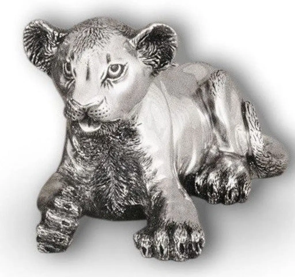 D''Argenta''s master craftsman, Claudio Rodrigues has created this beautiful sculpture series of lion cubs. Each cub is rendered lifelike with his attention to detail. From the chest fur on the young lions chest to their intense gaze, these pieces are stunning, and a must have for a true enthusiast. These sculptures come in three distinct poses: Lying with a fixed authoritative gaze, crouching to spring into a pounce, and sitting with its head tilted deferentially towards the object of its attention. 1 of 3. About D''Argenta Silver EleganceOrnate in design, exquisite in detail, and beautifully elegant, the Sterling Silver Plated products created by the artists of D''Argenta Silver Elegance are the perfect heirloom quality pieces for any home. The distinctive sterling silver designs stand out against the black neillo inlay and the intricate detail is breathtakingly attractive. D''Argenta Silver Sculptures and objects d''art offer unparalleled excellence in quality and exquisite attention to detail, because they are the hallmarks that have established D''Argenta as a leader in the export of precious metal-finished art for over a quarter of a century. Each of the over 200 limited-edition sculptures, personally signed by the artist, is technically flawless yet competitively priced..the same master-craftsmanship received in pieces that have been gifted to royalty, heads of state and the Vatican. From the surface detail of the innumerable tumuli and broad swells that impart the hides of the elephant collection to the graceful lines that capture the motion of a stallion''s gallop, you will marvel at the beauty of your truly unique acquisition as it graces a special place in your home. Historically, sculptures composed of precious metals were crafted using the traditional hot casting process. 25 years ago, the artisans at renowned metal art company D''Argenta introduced an advanced new metalworking technique that changed the way precious metals are sculpted. D''Argenta''s new method combined cold casting and electroforming to create intricate, finely detailed sculptures. The pieces are initially plated with a . 015 inch (400 micro) thick layer of copper, then plated with silver or (24K) gold at a thickness of . 001 inch (24 micro). Each sculpture''s interior is composed of a polyester fiberglass core that strengthens sleek metal plating. After being formed, each piece is coated with a protective lacquer to prevents tarnishing and maintain luster. This final step ensures that all D''Argenta sculptures, though crafted with fine silver, do not require polish or any type of metal cleaner and can be simply dusted with a dry cloth as needed. Exported around the world and now available in over 25 countries, D''Aragenta''s products have won international acclaim because of their innovative construction and exquisite beauty. In 1981, D''Argenta was recognized with the Bulgarian Government Gold Medal award. In 1992, a D''Argenta sculpture was gifted to His Royal Highness Prince Naruhito of Japan on a visit to Mexico. A nod to the company''s exclusive prestige, D''Argenta sculptures have been gifted to an increasingly long list of dignitaries, including Pope John Paul II, Prince Phillip of England, and his Majesty King Harald of Norway. The gifted artists of D''Argenta include: Manuel Alvarado, Ricardo Del Rio, Enrique Jolly, Javier Arenas Perez, Claudio Rodr