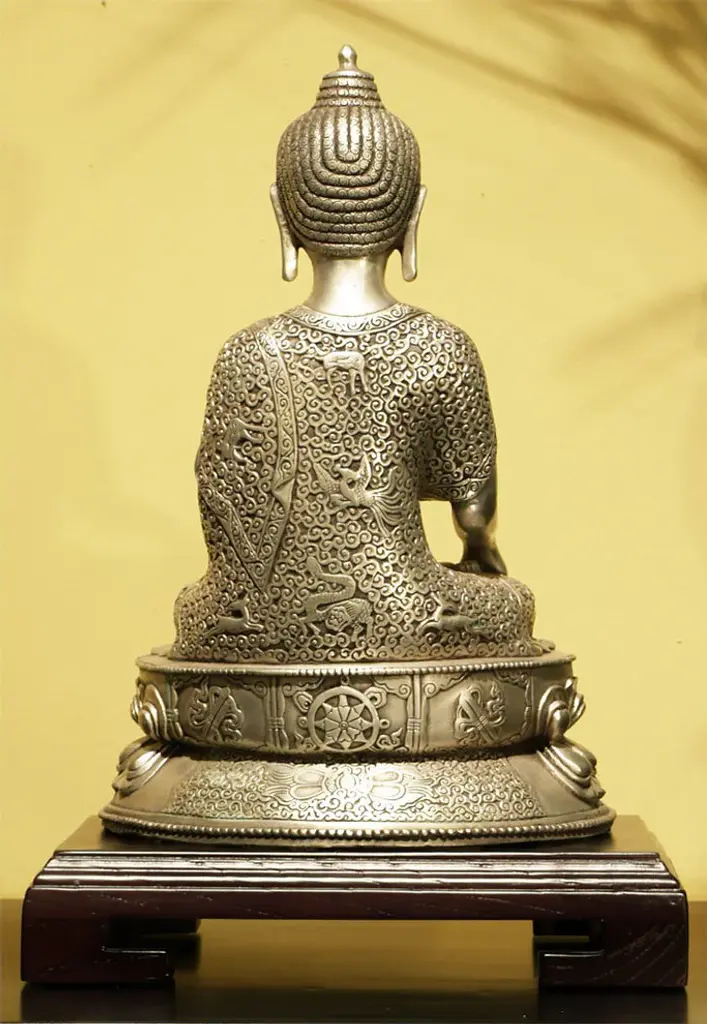 Silver Plated Meditating Buddha Statue Asian Figurine